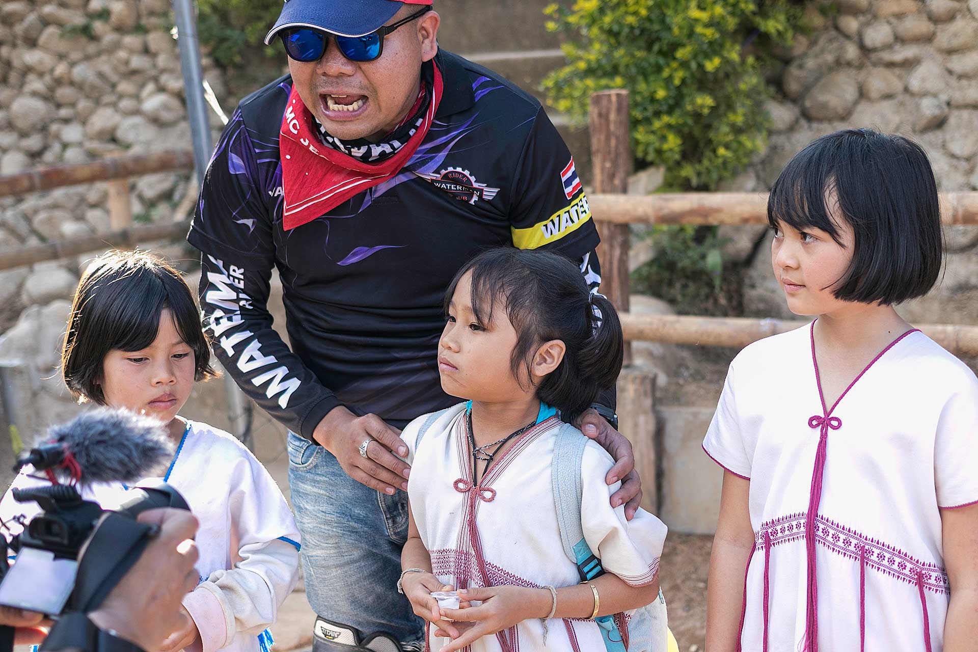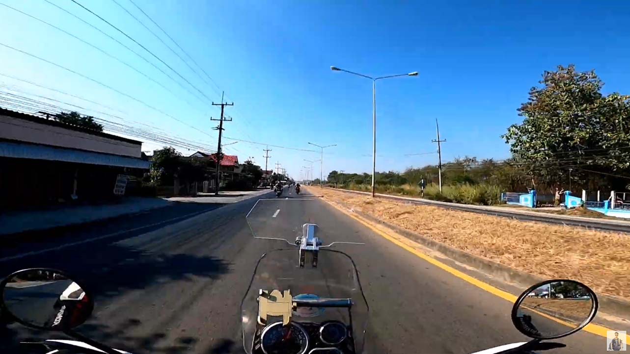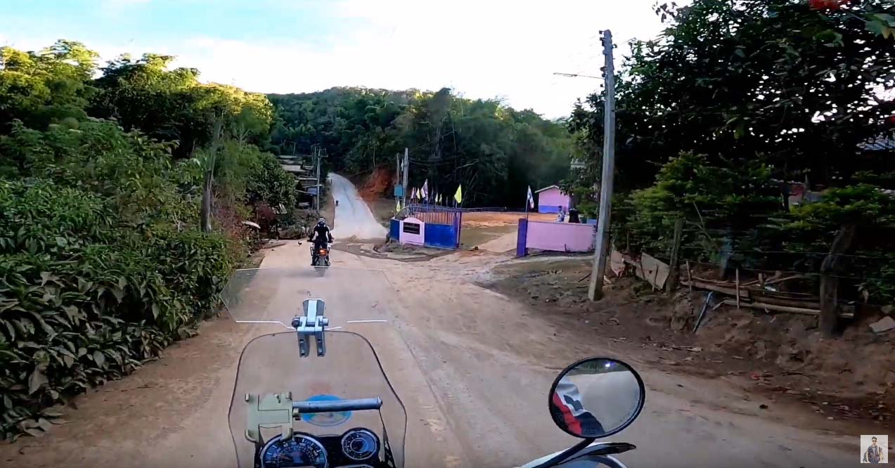 สภาพถนนที่มิได้บำรุงรักษามานาน จนสภาพมีแต่หลุมตลอดเส้นทาง ช่วงขาลงเนิน ทีมงานต้องยืนบังคับรถมอเตอร์ไซต์ เพื่อเพิ่มความมั่นคงการทรงตัว โดยการทิ้งน้ำหนักไปที่โซ็คหน้าและเพิ่มทัศนวิสัยการมองเห็นผิวการจราจรที่เป็นหลุมเป็นบ่อ ตัวผมเองก็มีเสียจังหวะหลายครั้งแต่โชคยังดีที่ยังไม่ล้ม และเมื่อก่อนถึงโรงเรียนประมาณ 4 กิโลเมตร น็อตยึดโครงปี๊ปฝั่งขวาของมอเตอร์ไซต์ของผมหลุด ส่งผลให้ป้ายภาษีวงกลมผมหลุด แต่ไม่ทราบเลย แต่กัปตันโจ้ ซึ่งขี่ตามหลังผมมาสังเกตเห็นว่ามีอะไรหลุดจากรถผม จอดเก็บป้ายภาษีวงกลมไว้ให้