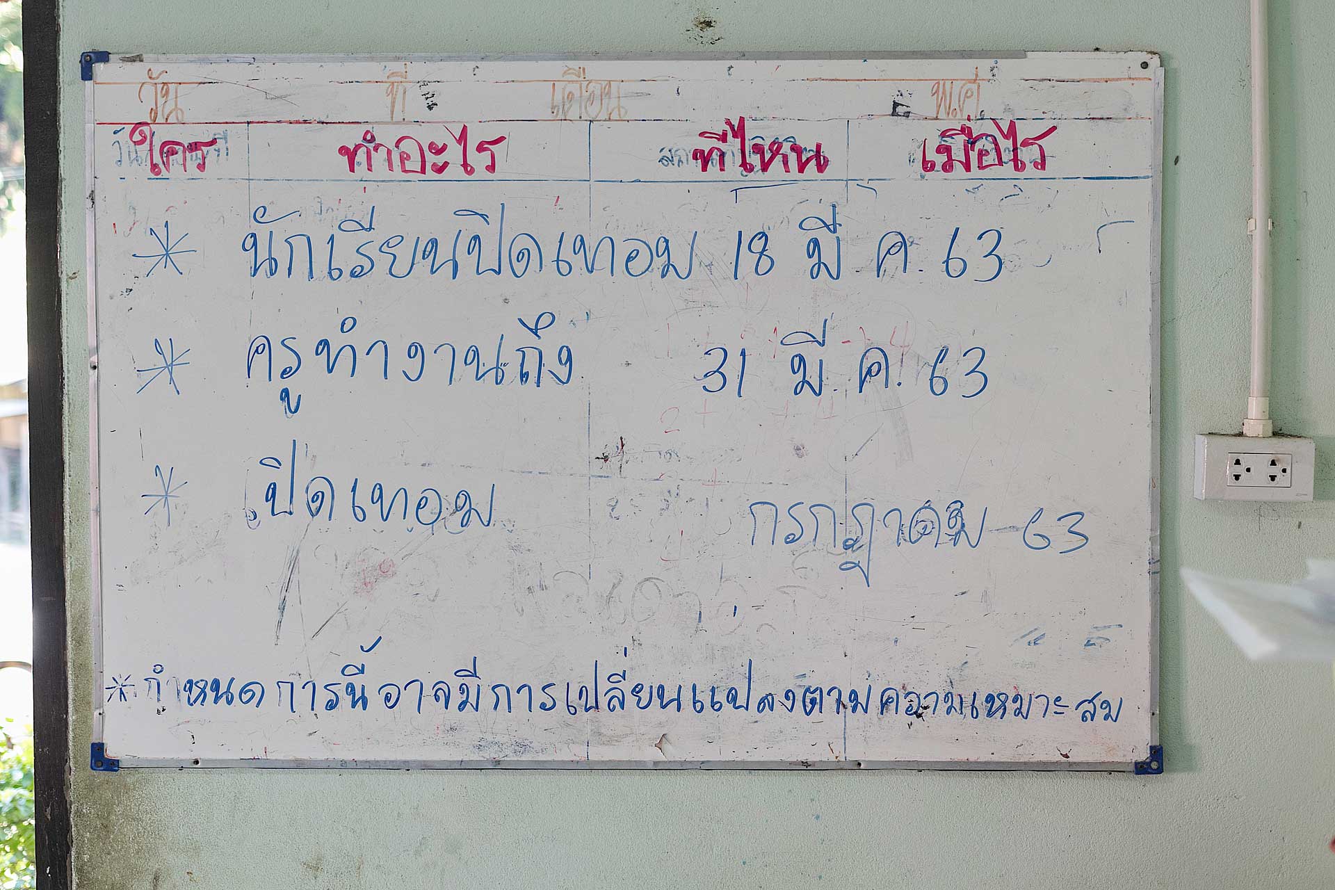 กำหนดการเดินทางเข้าไปยังโรงเรียน เป็นวันเสาร์ที่ 16 มกราคม 2564