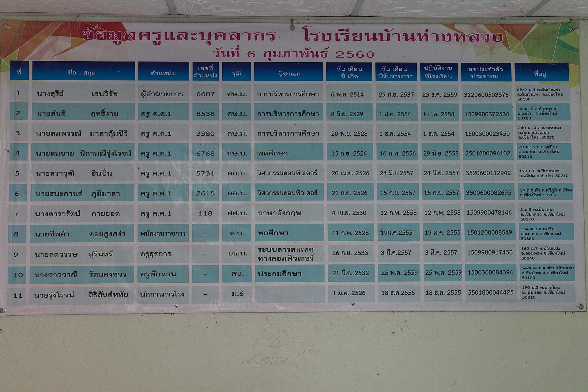 จากการพูดคุยกับครูผู้อำนวยการโรงเรียน คุณครูสมชาย ชูจันทร์ และครูดูแลเด็กกินนอน