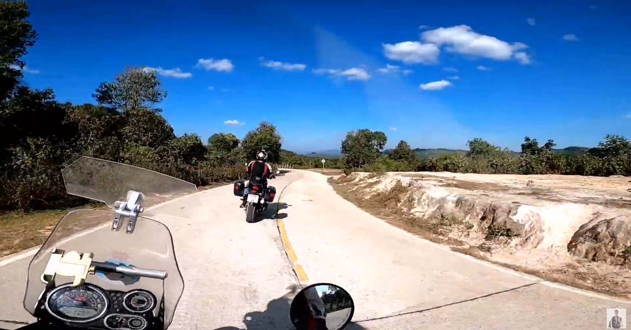 เมื่อทีมงานอิ่มหน่ำสำราญกับไก่ย่าง ข้าวเหนียวส้มตำเสร็จ ได้ล้างหน้าล้างตา เอาความเมื่อยล้าในยามเช้าออก พวกเราก็พร้อมจะเดินทางเข้าพื้นที่ในจริงๆเสียที อีก 42กิโลเมตร ซึ่งต้องใช้เวลาไม่ต่ำกว่า หนึ่งชั่วโมงครึ่ง เส้นทางที่รถสำรวจเส้นทางของกูเกิล (google street view car) ยังไม่ได้เดินทางเข้าไปสำรวจ จะเป็นช่วงเวลาของการพิสูจน์หัวใจของคนกับหัวใจเหล็กของเครื่องจักรยานพาหนะสองล้อ ว่าใครจะใจถึงกว่ากัน