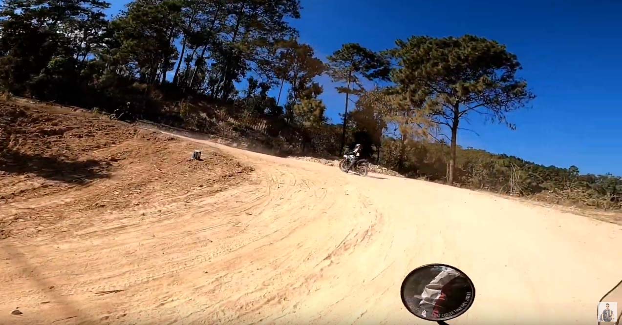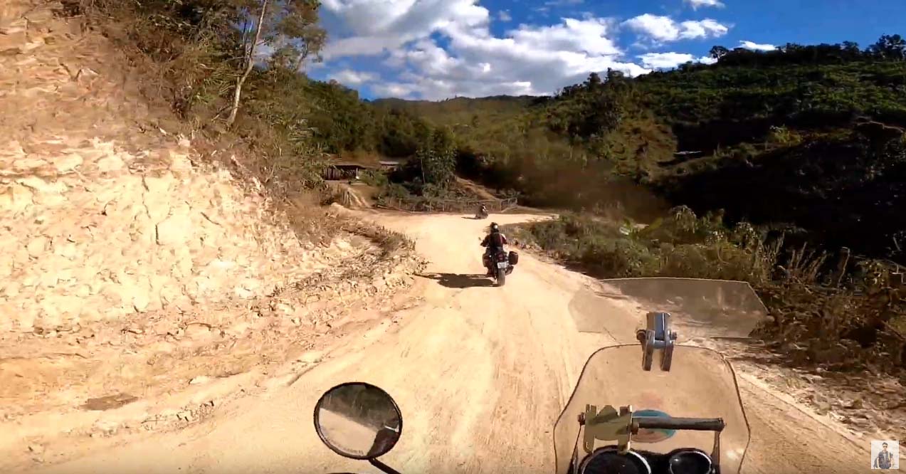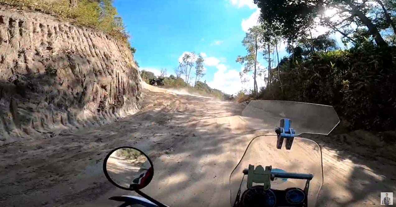 สภาพถนนที่เปลี่ยนจากคอนกรีต แปรเปลี่ยนถนนหินคลุก จนกระทั่งเป็นถนนหน้าดินที่มีชั้นฝุ่นหนา ทีมสำรวจต้องขี่มอเตอร์ไซต์ ทิ้งช่วงกันไม่ต่ำกว่า100เมตร เพื่อป้องกันปัญหาเรื่องฝุ่นบดบังทัศนวิสัยการมอง