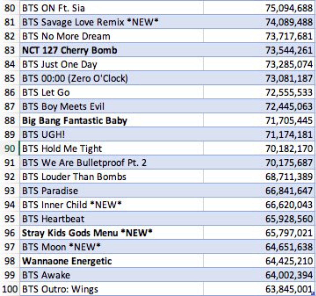 [K-POP] TOP100 เพลงของ "Boy Group" ที่ยอดสตรีมสูงสุดตลอดกาลบน Spotify