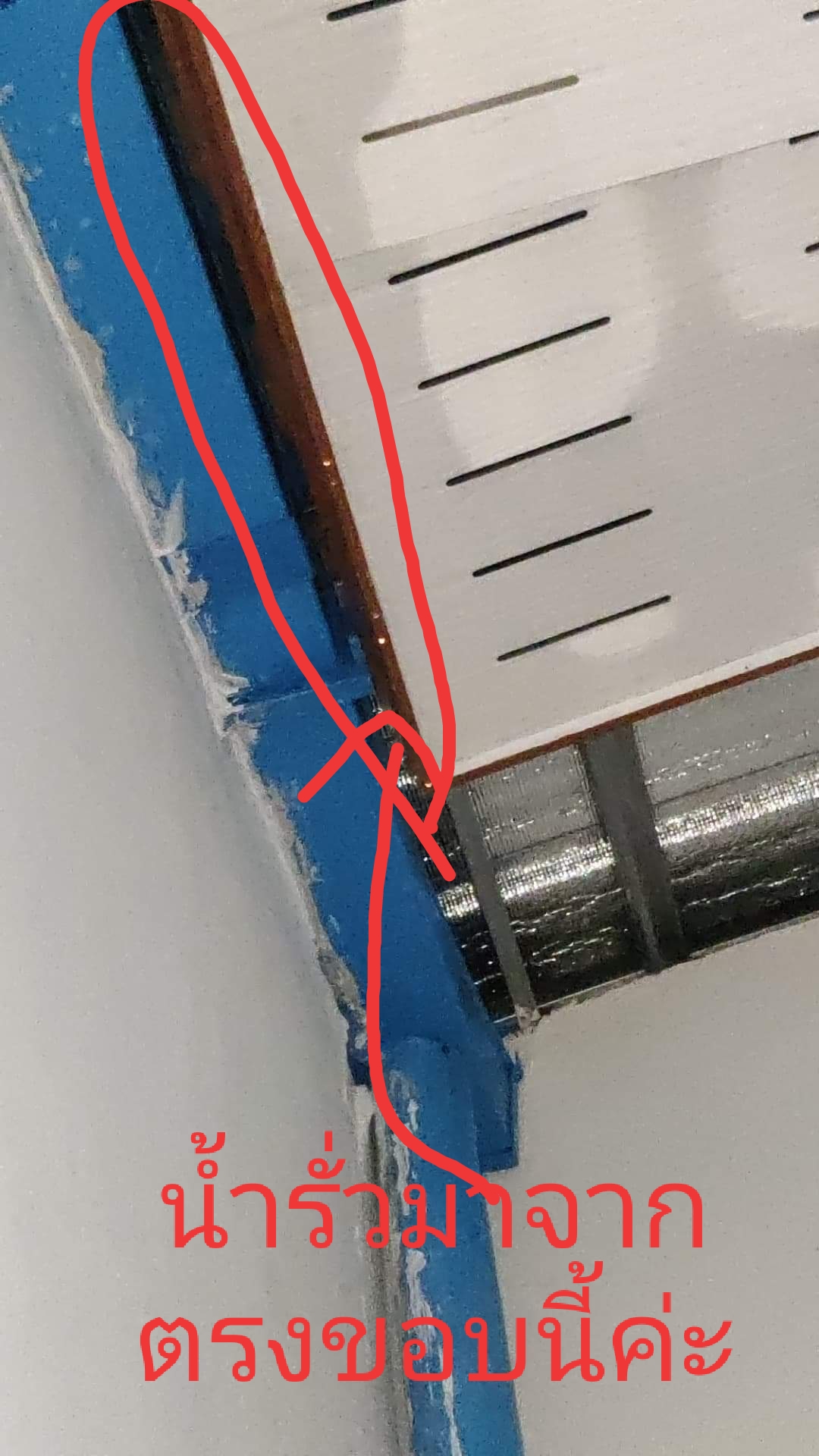 ส่วนน้ำที่ซึมมาที่ฝ้าซึมมาแค่ฝั่งเดียวค่ะ อีกฝั่งไม่มีน้ำซึมที่ฝ้า มีแค่น้ำย้อยตามขอบเฉยๆค่ะ