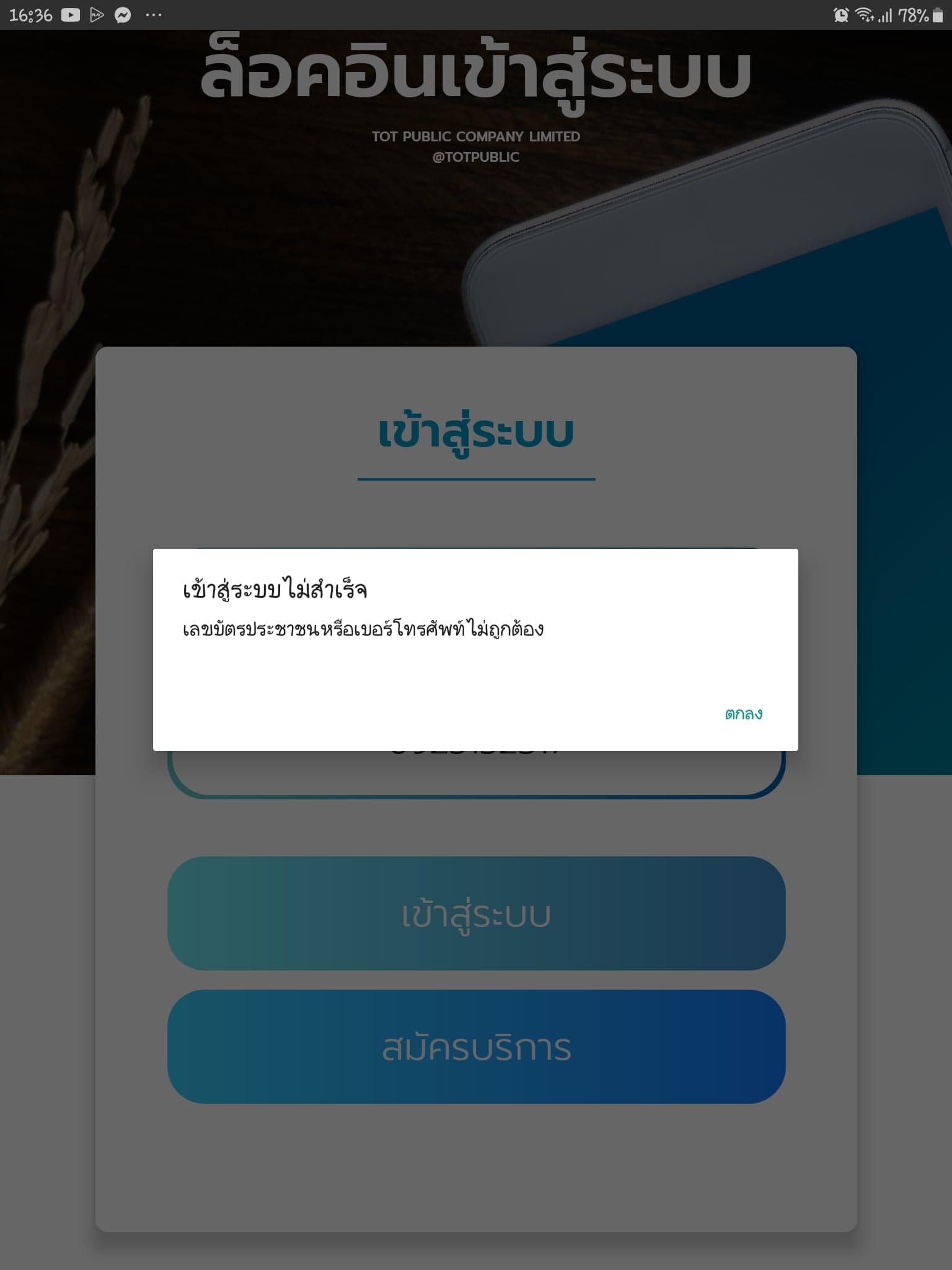 แจ้งปัญหา แอพพิเคชัน TOT easy life ล็อคอินเช้าไม่ได้