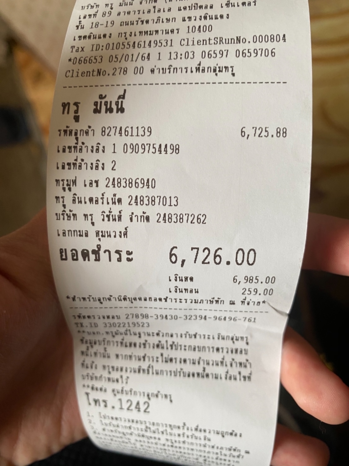 วันนี้แม่ไปจ่ายค่าเน็ตมาค่ะ 6พันเกือบ7พัน แม่บอก5-6เดือน แต่ระงับสัญญาณไปนานแล้ว วันนี้พึ่งไปจ่ายมาค่ะ แต่สัญญาณยังไม่มา