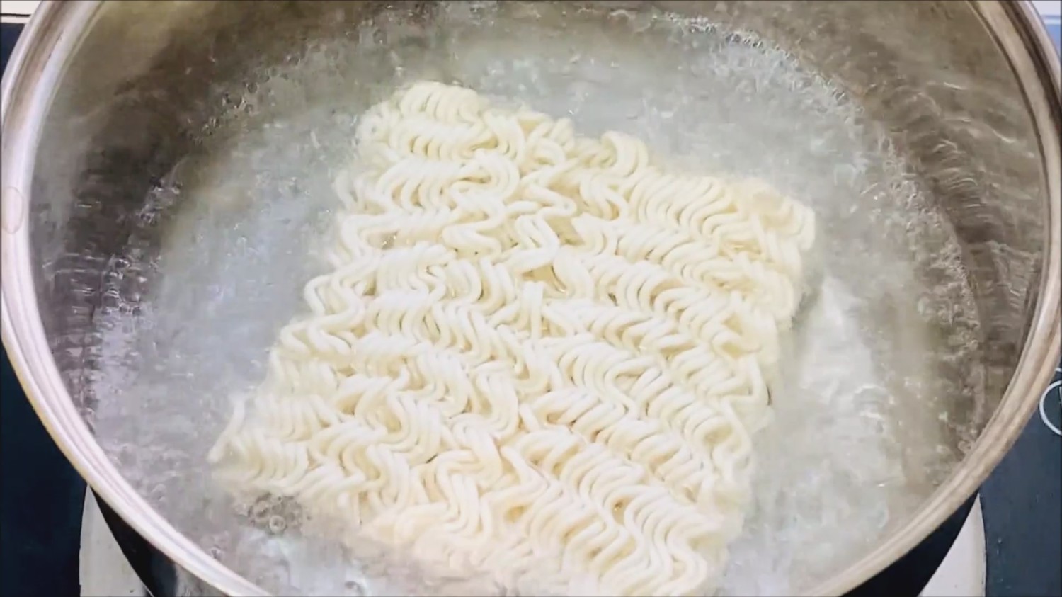 2.ตั้งน้ำเอามาม่าต้ม 2 นาที ตักใส่ถ้วยใส่เครื่องปรุงมาม่าคลุกให้เข้ากัน