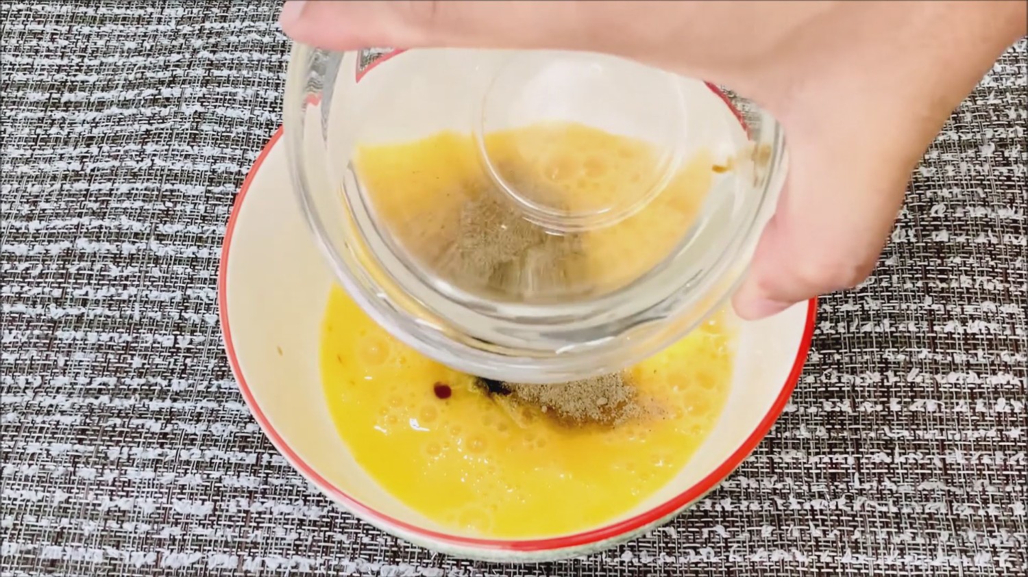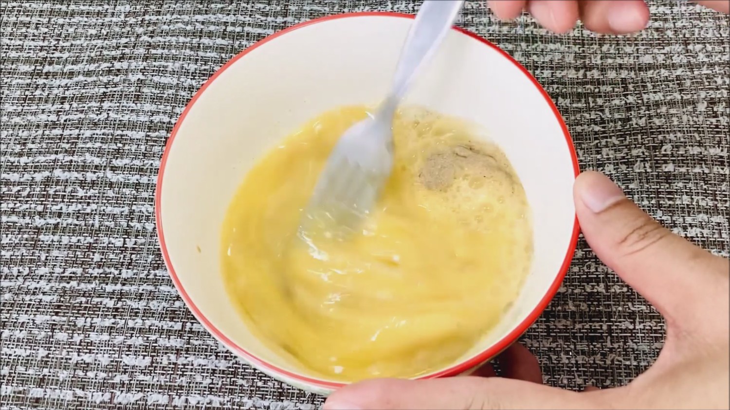 1.ตอกไข่ไก่ใส่ถ้วย ปรุงรสด้วยน้ำตาล พริกไทยป่น ซีอิ้วขาว ซอสหอย น้ำ ตีให้เข้ากัน ปิดด้วยฟลอยเจาะรู เข้าไมโครเวฟ 3 นาที