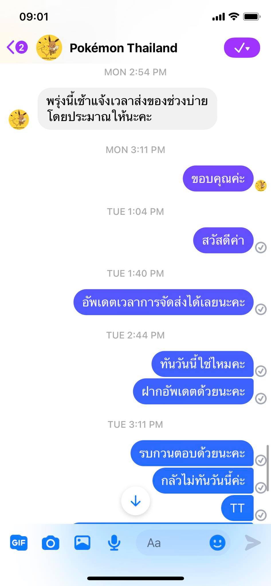 ก่อนวันเกิด 1 วัน ทางแอดมินเพจก็ทำหน้าที่ได้ดีนะคะ ทักมาหาเราอีกรอบค่ะ บอกเราว่า พรุ่งนี้ (วันที่ 5 มกรา) จะส่งตุ๊กตาไปให้ และจะรีบมาบอกเวลาเราตอนเช้า ว่าจะส่งให้เราช่วงไหน