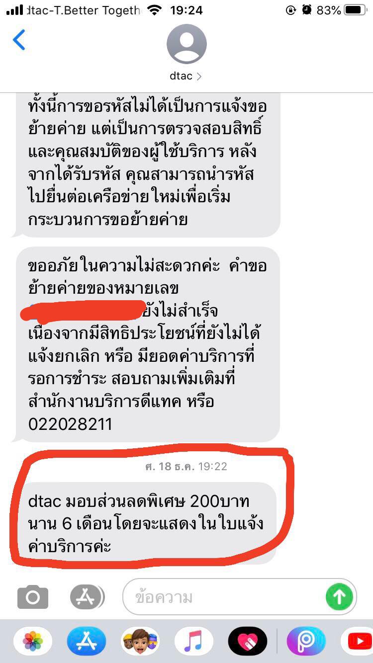 แจ้งย้ายค่ายจากDtac แต่พนักงานเสนอส่วนลดค่าบริการรายเดือน 50%