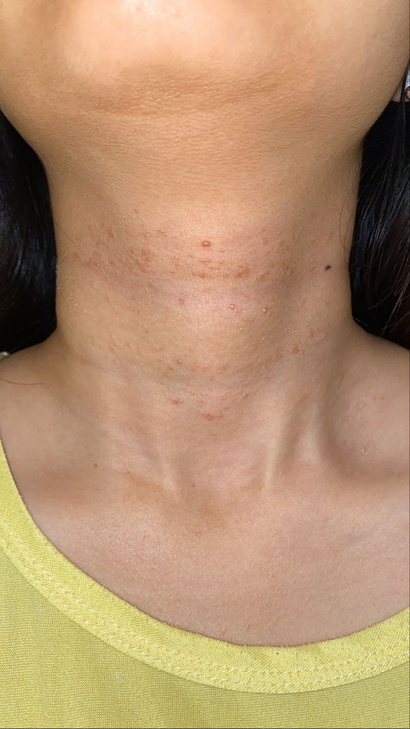 เป็นสิวแบบนี้ตั้งแต่ป.4 พอโตขึ้นมันทำให้แบบสูญเสียความมันใจเวลาโดนแดดคนจะชอบทักแบบว่าคอเป็นอะไรหาหมอมาหลายที่แล้วเค้าให้ยามาทาแต่ก็ยังไม่หาย พอจะทราบมั้ยคะว่าเป็นสิวอะไร หรือว่าแพ้อะไร อยากจะรักษาให้หายขาดจริงๆค่ะ😭