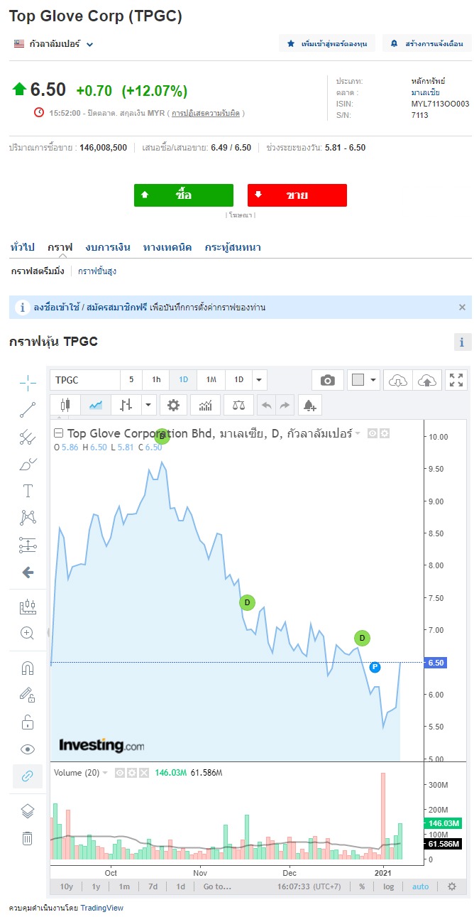 วันนี้ Top Glove Corp (TPGC) ฝั่งมาเลวิ่งเป็นม้าเลยครับ