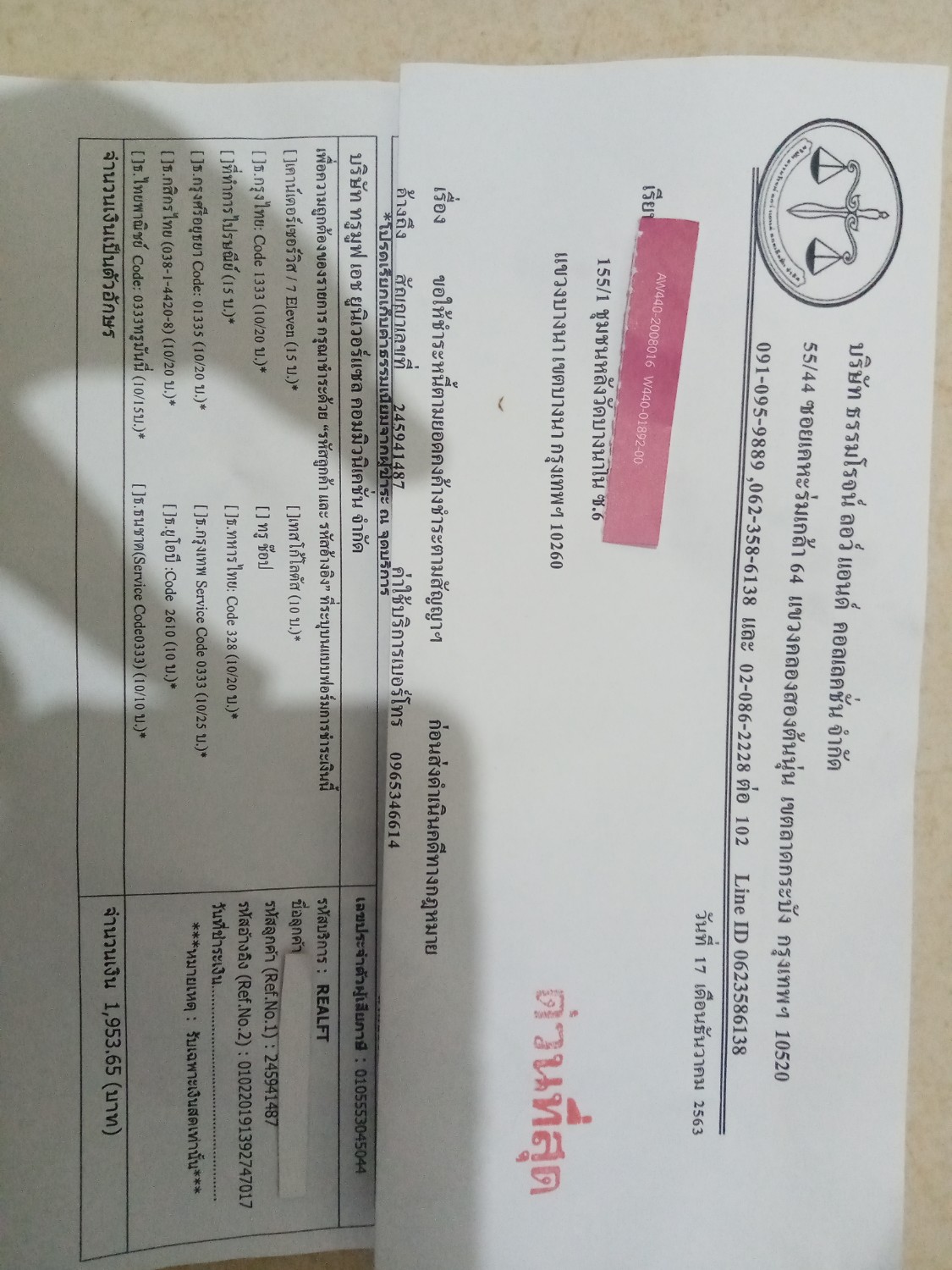 บริษัท ธรรมโรจน์ ลอว์ แอนด์ คอลเลคชั่น จำกัด บริษัท ทรูมูฟ เอช เขามีหมายเหตุ แบบว่ารับเฉพาะเงินสดเท่านั้น