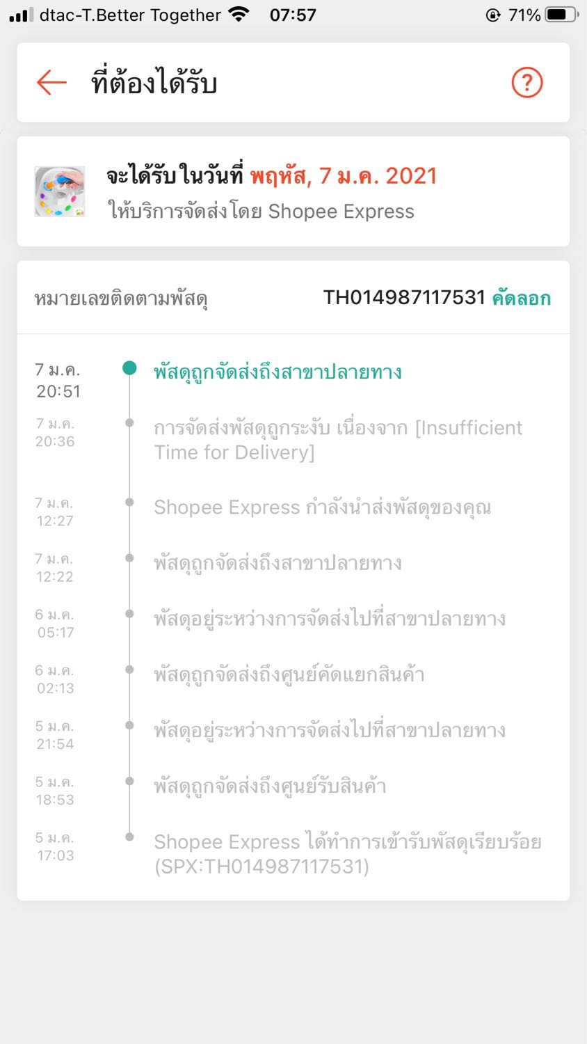 ขนส่ง Shopee ห่วยมากค่าาาา ร้านส่งของวันที่ 5 เว็บบอกถึงวันที่ 7 ยันวันนี้ยังไม่ได้ของเลย