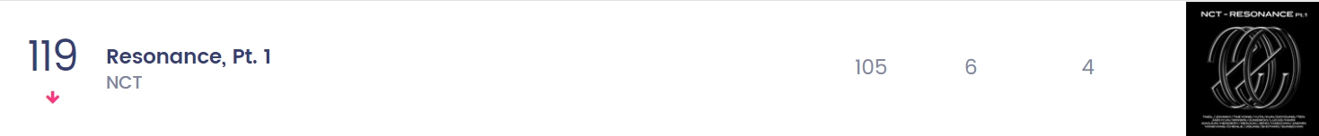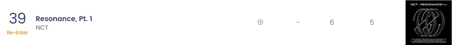 อย่างไรก็ตาม สัปดาห์แรกของปี 2021 อัลบั้ม RESONANCE Pt.1 ก็ได้เจาะเข้าสู่ชาร์ท Billboard 200 ได้อีกครั้งในอันดับที่ 39 ก่อนที่สัปดาห์ต่อมาจะสามารถไต่ขึ้นไปอันดับที่ 36 ได้ ซึ่งถือเป็นครั้งแรกของ NCT ในกรณีที่อัลบั้มหลุดชาร์ทไปแล้ว แต่สามารถกลับเข้าสู่ชาร์ทได้อีกครั้ง อีกทั้งยังสามารถไต่ชาร์ทขึ้นไปในอันดับที่สูงขึ้นได้อีกด้วย