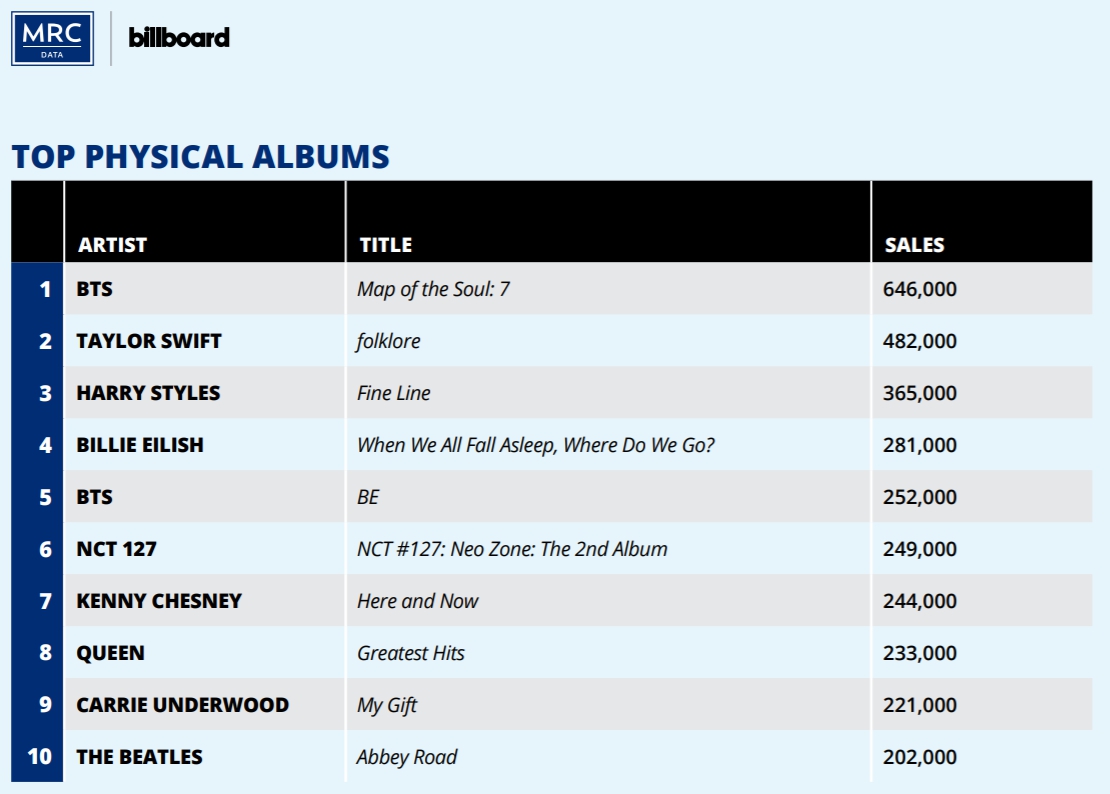 นอกจากนี้ อัลบั้มเต็มชุดที่ 2 'Neo Zone' ของ NCT 127 ยังเป็นอัลบั้มที่ขายดีเป็นอันดับที่ 6 ของอเมริกา ในปี 2020 ไปด้วยยอดขาย 249,000 ก็อปปี้