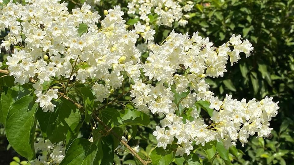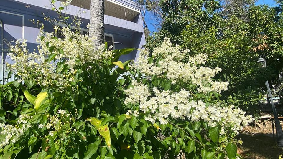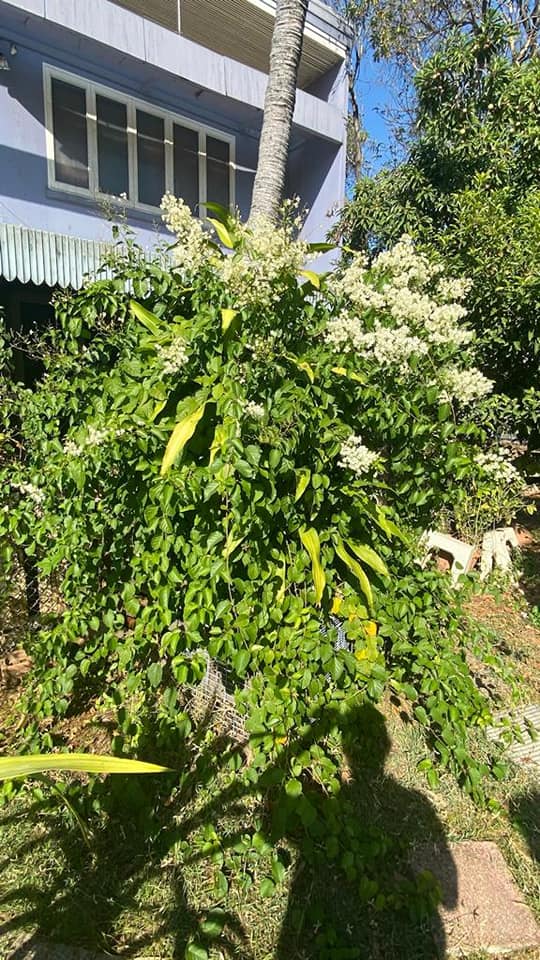 ราวต้นธ.ค. 63 เดินผ่านสนามหน้าบ้านตอนจะขึ้นรถ สงสัยว่าดอกอะไรบานขาวโพลน