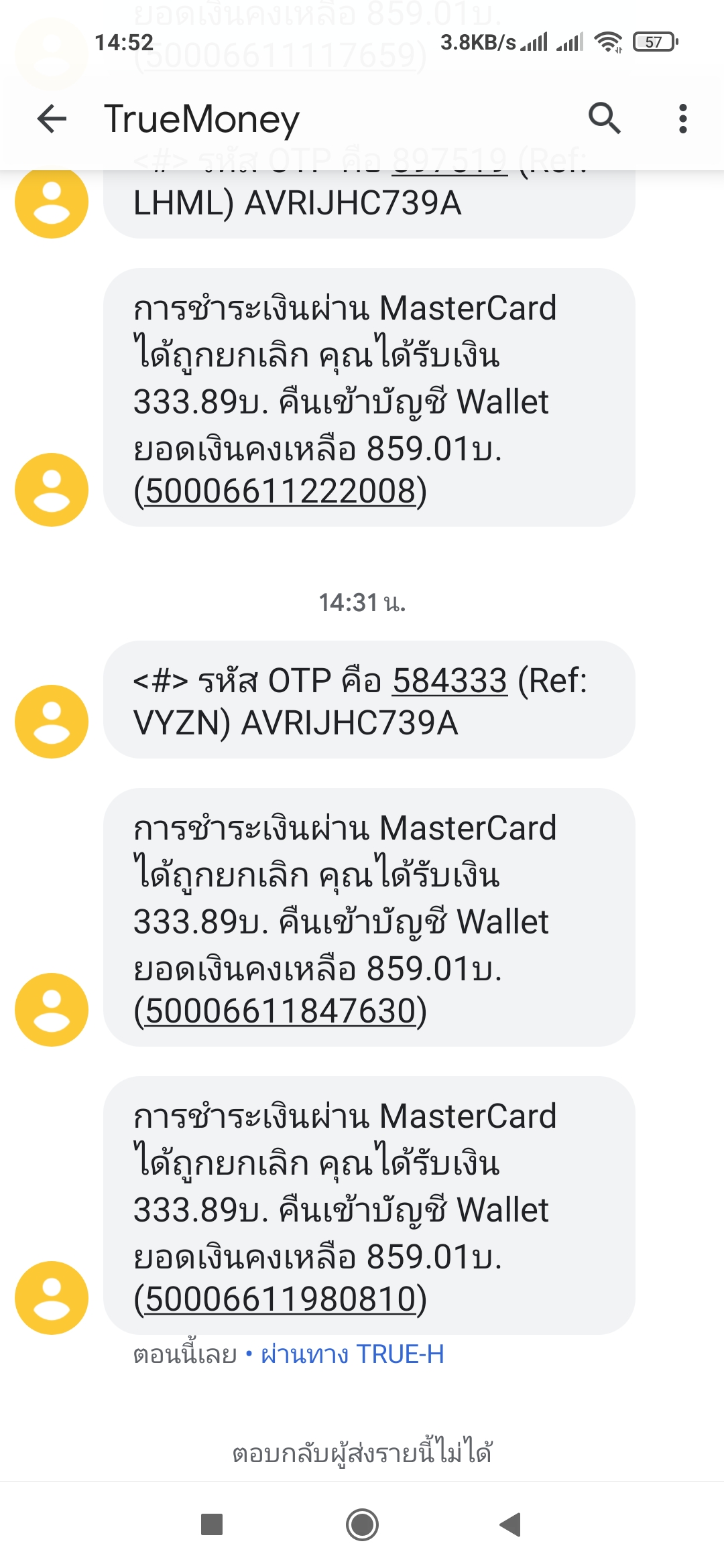 ปัญหาจ่าย Mastercard ผ่านทรูวอลเล็ต