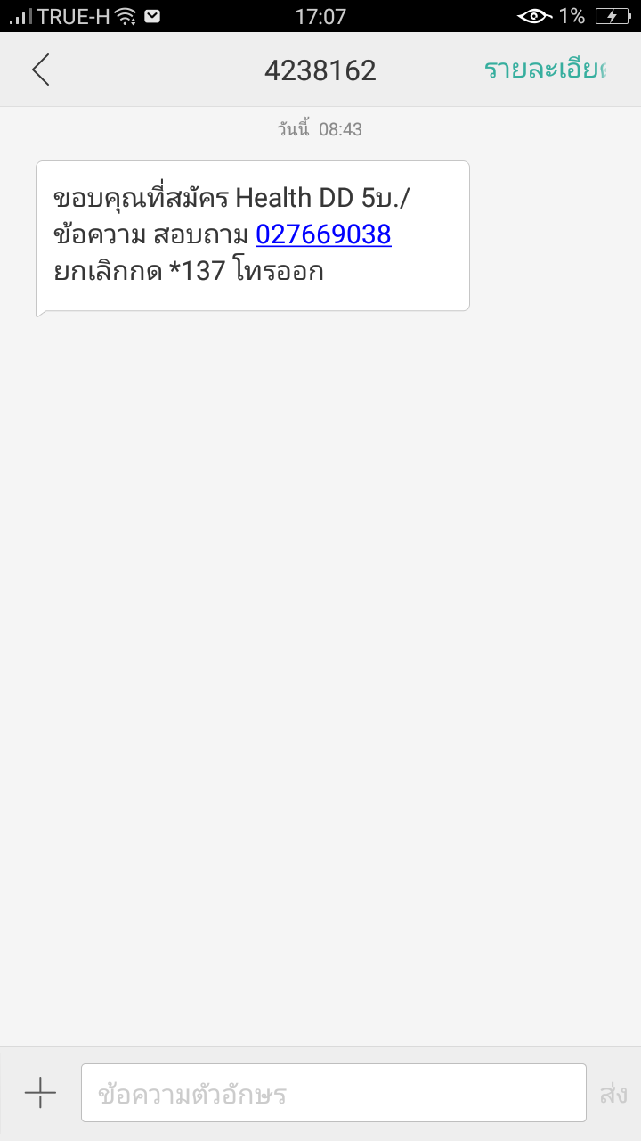 มีSMSมาแจ้งว่าเราสมัครใช้บริการ ข้อความละ5บาท คือไรคะ truemove