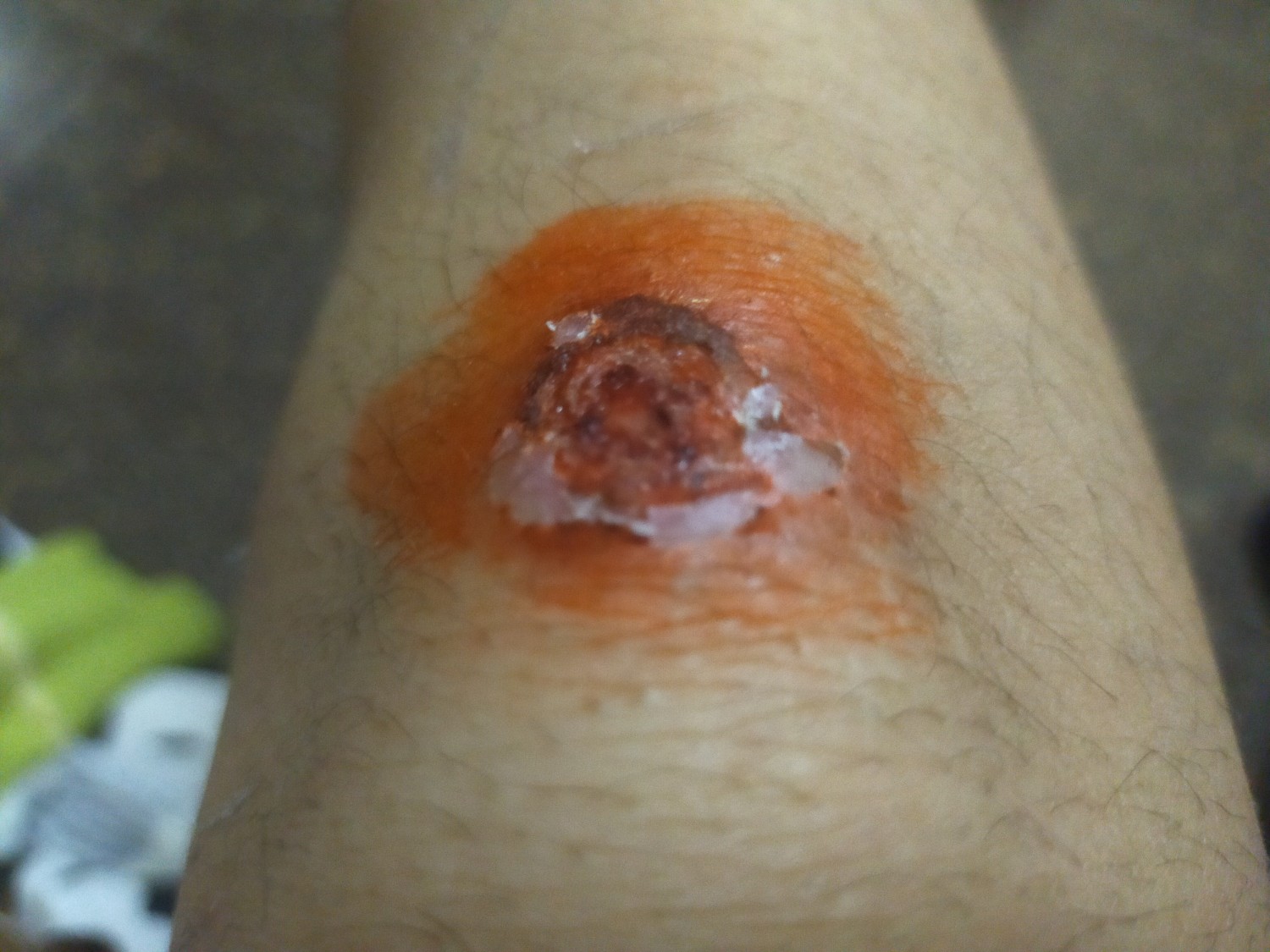 เผลอไปเหยียบก้างปลาแหลมๆค่ะ ก้างปลาที่ตกอยู่พื้นบ้าน โดนมันทิ่ม เข้าลึกนิดหน่อย ดึงออกแล้วเลือดไหล แสบมาก นี่ผ่านมาวันนึงแล้วยังปวดอยู่เลย จะเป็นไรไหมคะ