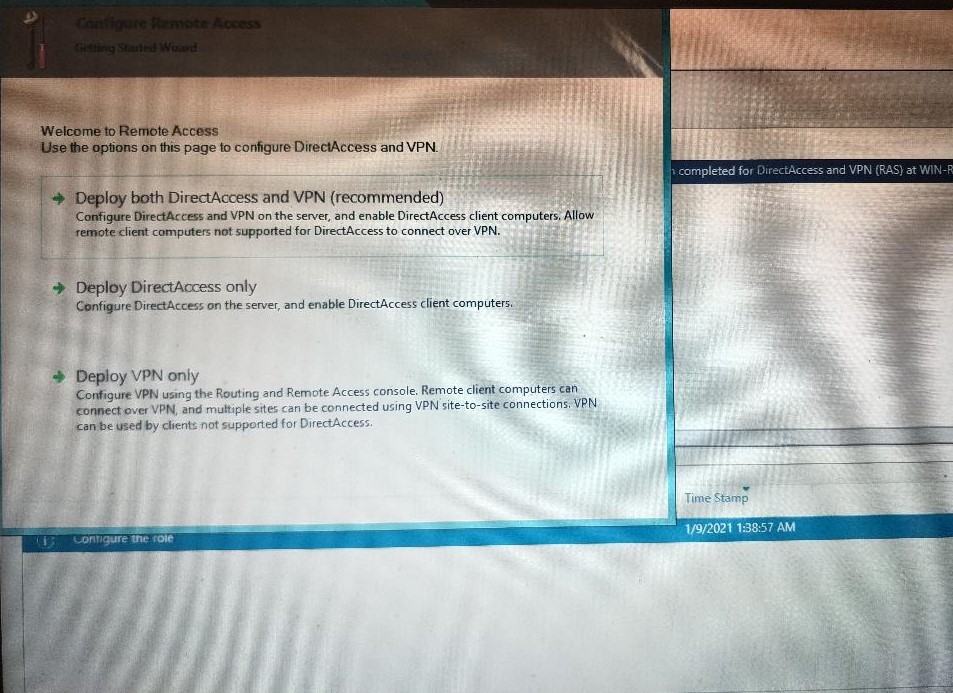 แต่เมื่อคืนสังเกตตัว windows server 2012 มีแจ้งให้ทำ "configure remote access" ก็เลยลองทำดู (ตามในภาพ ก็กดๆ ไป ไม่ได้ตั้งค่าอะไรเลย)