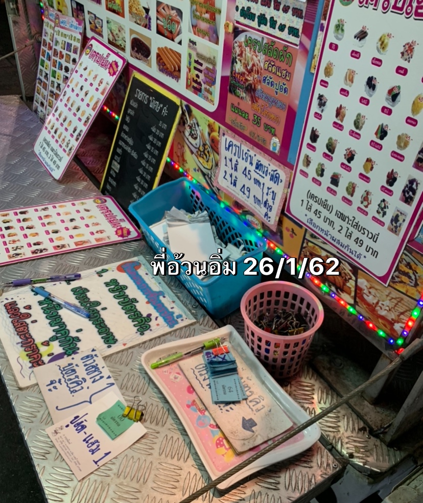 เขียนรายการกับเสียบบัตรคิว รอเรียกคิว รอเครปเสร็จจ่ายเงิน