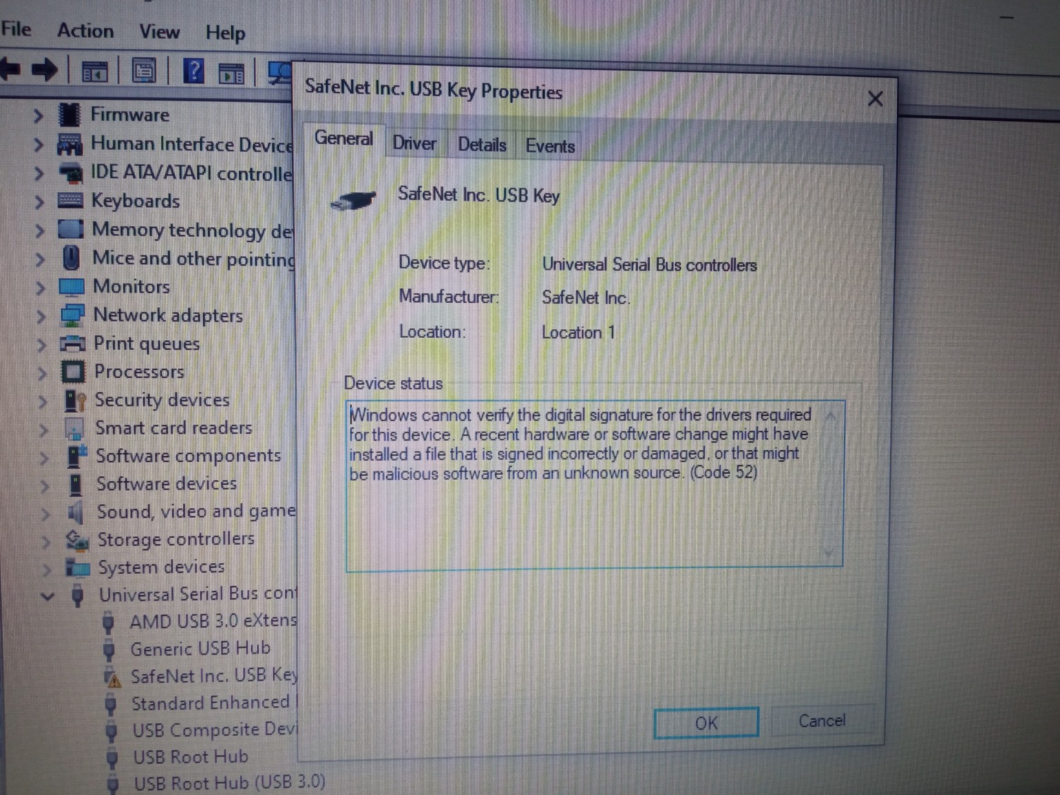 Usb ขึ้นเคื่องหมายตกใจ code 52 แก้ยังไงครับ