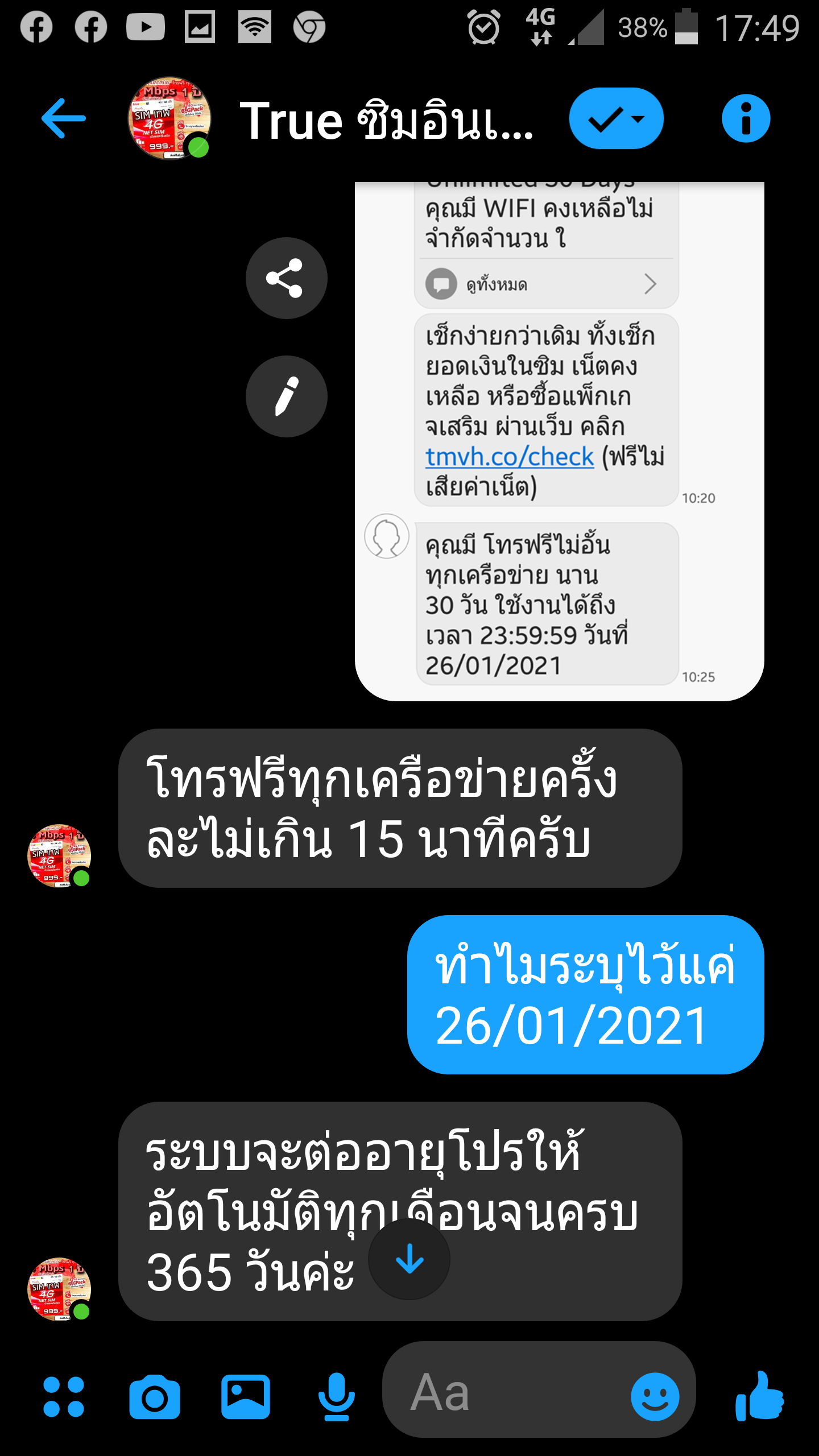 พอสอบถามไปยังผู้ขาย ก็แจ้งว่าไม่ต้องเติมเงินระบบจะขยายโปรให้อัตโนมัติทุกเดือน