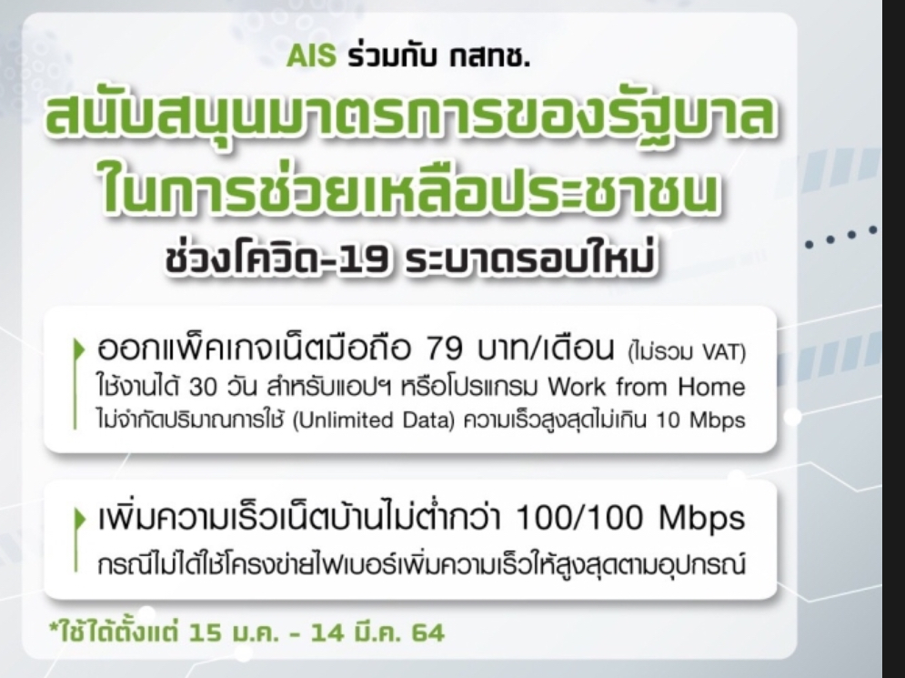AIS...ออก package เน็ต มือถือ 79 บาทต่อเดือน ช่วง 15 มค— 14 มีนา 2564. ถามว่า...หาก ผม ย้ายค่ายแบบเติมเงิน. ได้ไหม