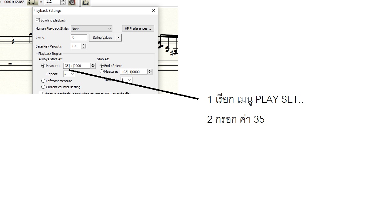 โปรแกรม finale ถ้าต้องการ เริ่ม เล่นเพลง ที่ห้อง 15 / ไม่ต้องการเล่นเพลงจากห้อง 1/