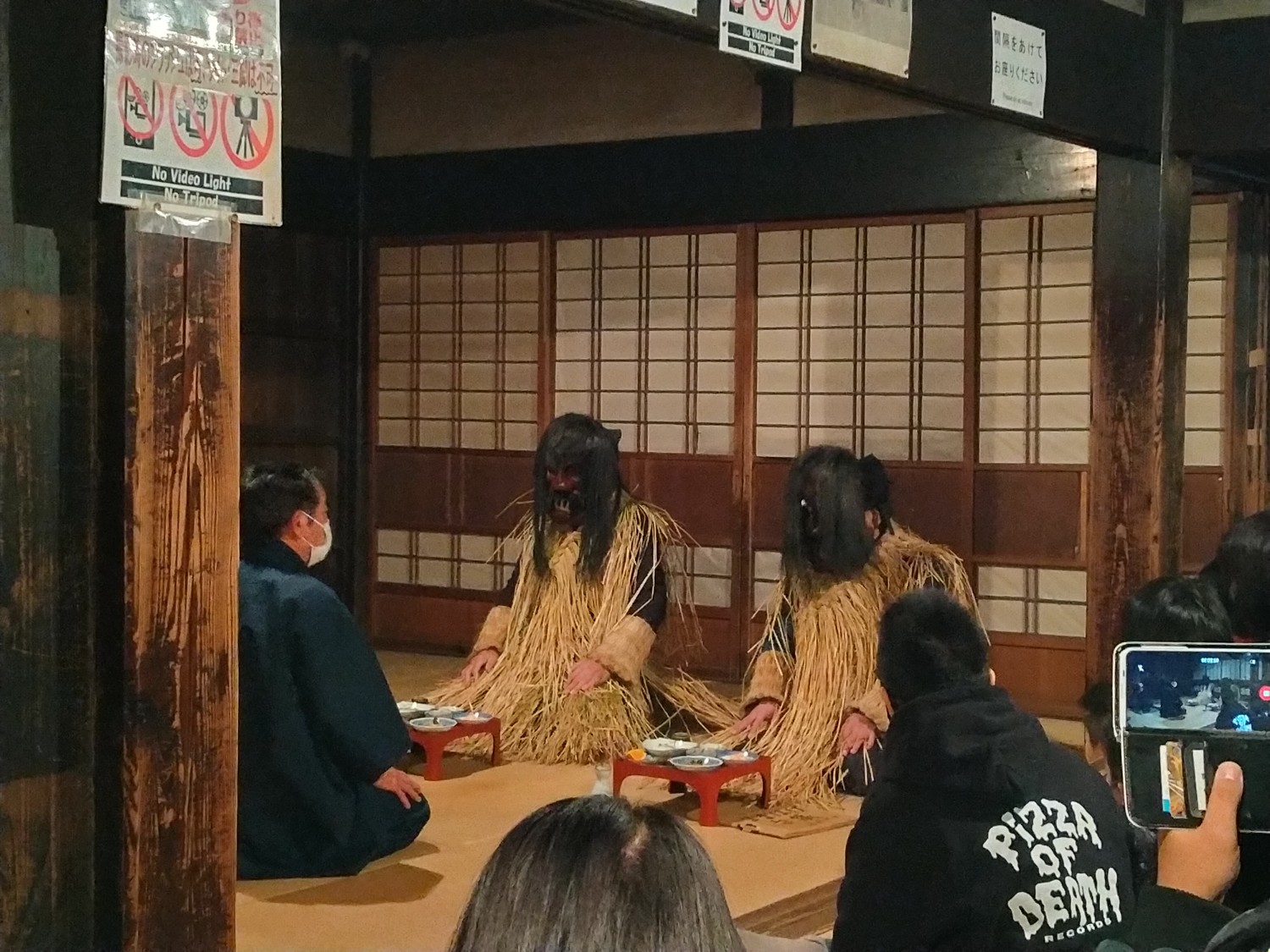 เข้าไปนั่งสักพักยังไม่ทันตั้งตัว ก็มาเลยครับ นามาฮาเกะตัวเป็นๆ มาพร้อมกับเสียงอันทรงพลัง เด็กๆที่มาดูด้วยตกใจ ร้องให้กันระงม 555