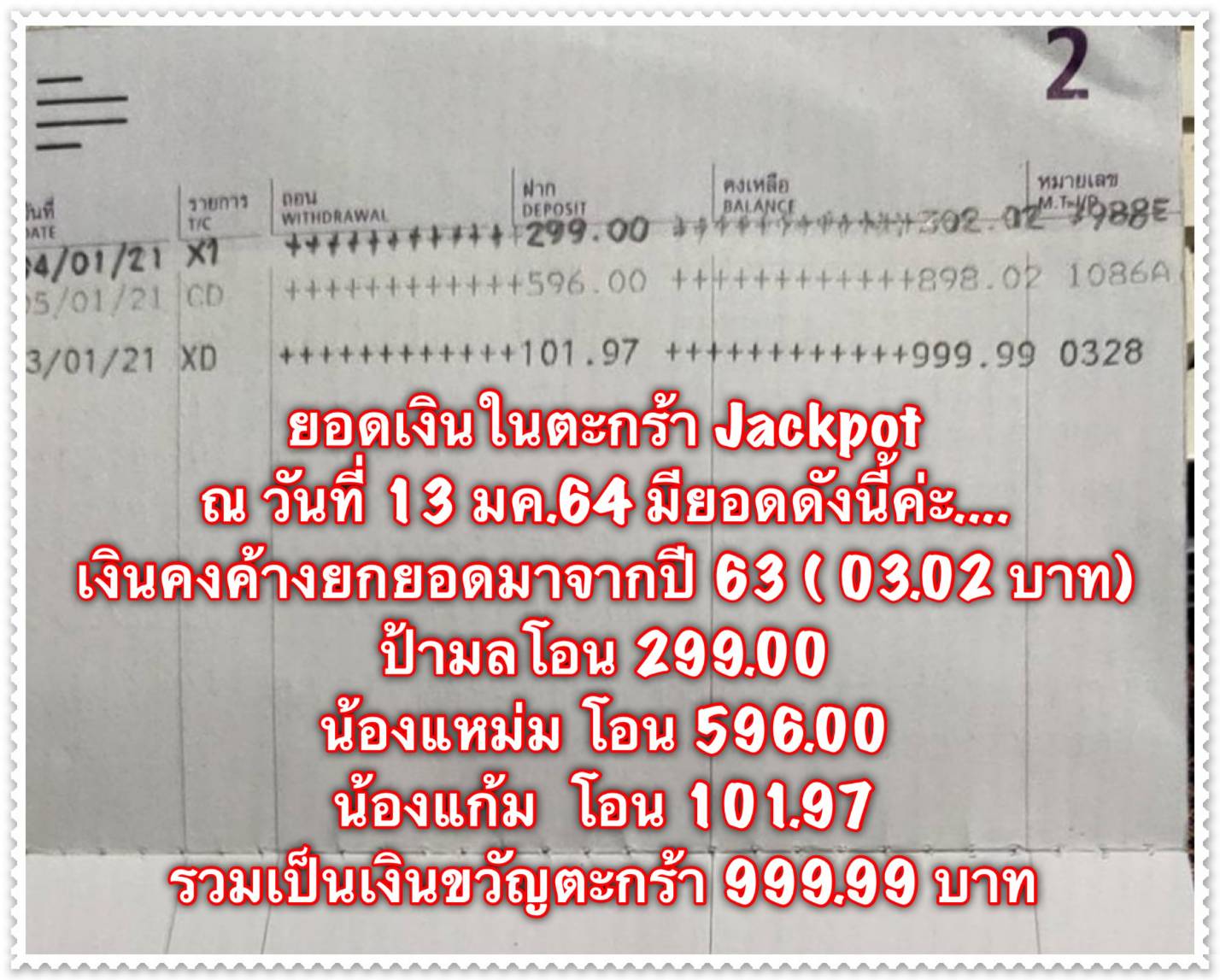 กระทู้ประจำวันพุธที่ 16 มิ.ย. 2564 ขอขอบคุณ คุณ สุมัทนา ผู้ติดต่อและตามล่าสลากฯ ในงวดนี้แต่เพียงผู้เดียว (เนื่องจากสถานการณ์โควิด) ขอขอบคุณ ป้าใหม่ เด็กท้ายทุ่