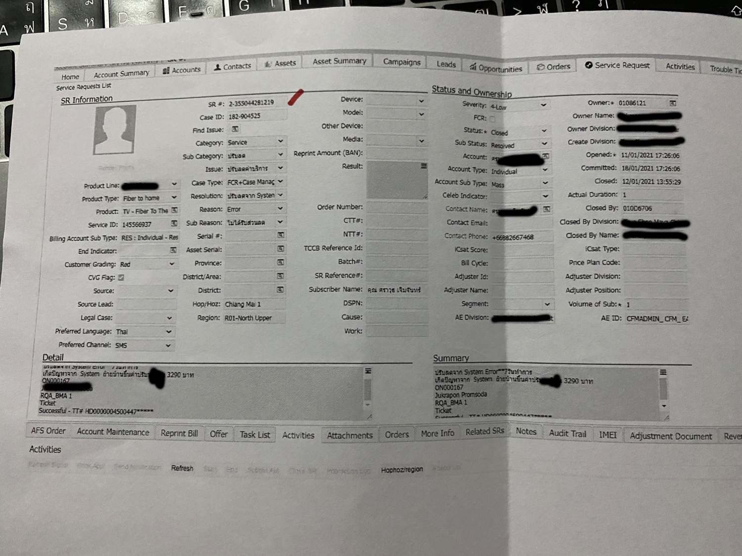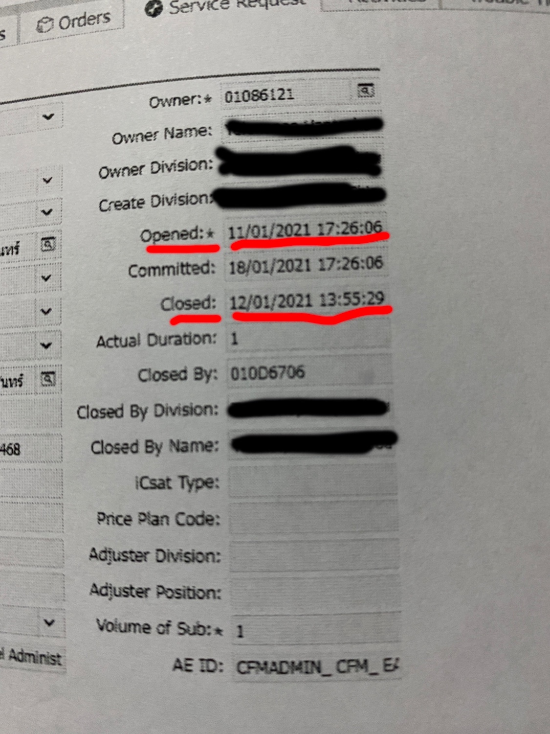 แต่พอเราตรวจสอบในใบ SR Information ที่ได้มานั้นพบว่า เรายื่นเรื่องในวันที่ 11 มกราคม และทางค่ายก็ได้ปิดใบเปิดงานเราในวันที่ 12 มกราคมไปเป็นที่เรียบร้อยแล้ว แต่จนถึงตอนนี้ก็ยังไม่ได้มีการปรับลดค่าบริการของเราให้เลย