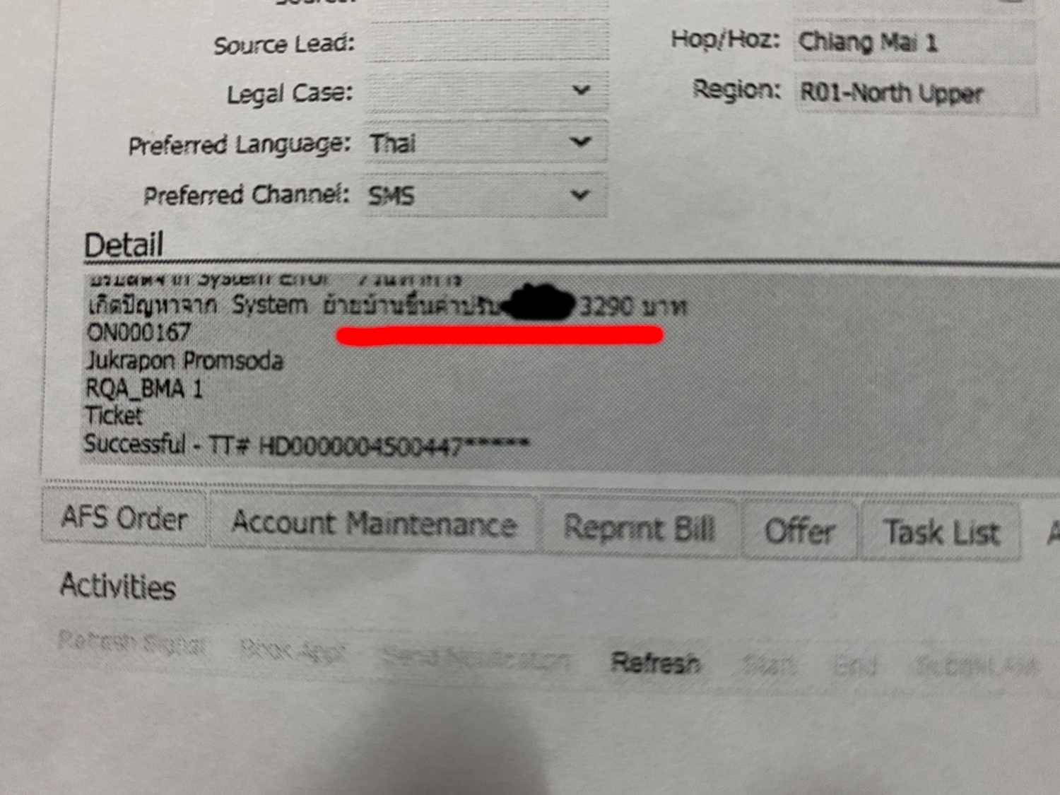 จนถึงเมื่อวันที่ 17 มกราคม เราลองเข้าไปเช็คค่าบริการว่าได้ปรับลดให้เราหรือยังก็พบว่า ค่าบริการยังคาอยู่ที่ 3,290 บาท จึงได้โทรไปตรวจสอบกับคอลเซ็นเตอร์อีกครั้ง ซึ่งได้รับคำตอบว่า ทางค่ายได้ปิดงานที่เราแจ้งไปแล้ว แต่จะต้องรอระบบเป็นคนปรับยอดลงให้อีกครั้ง ภายในระยะเวลา 7 วันทำการซึ่งจะครบเมื่อวัน 19 มกราคม ที่ผ่านมา แต่พอเราไปเช้คค่าบริการยังคงเท่าเดิม วันนี้ (20 มกราคม) เราจึงเข้าไปสอบถามที่ศูนย์อีกครั้งหนึ่งถึงการปรับลดค่าบริการส่วนที่เกินมา โดยพนักงานได้แต่บอกให้เราไม่ต้องกังวลกับค่าบริการที่เกิดขึ้น เดี๋ยวจะมีการปรับลดให้ แต่จะต้องรอส่งเรื่องไปยังส่วนภูมิภาคพิจารณา ซึ่งจะใช้เวลา 14 วันทำการ และปริ้นท์ใบ SR Information เรื่องที่เราแจ้งไปกลับมาให้เรา