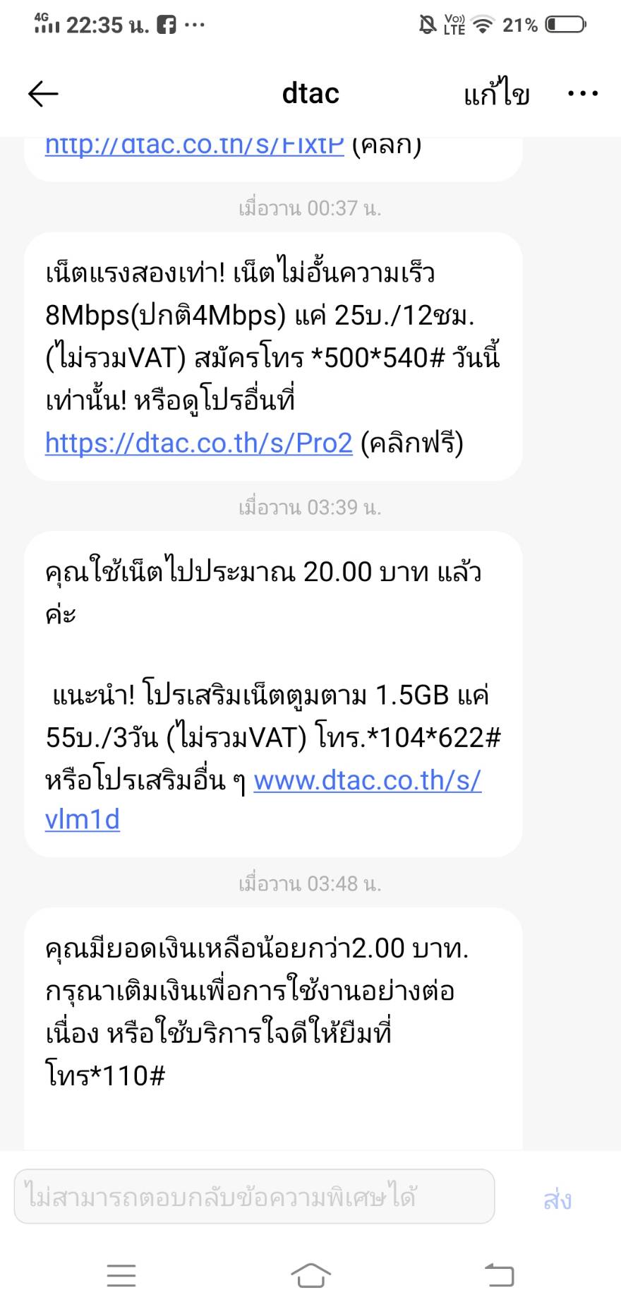 Dtac เติมเงินแล้วโดนหัก