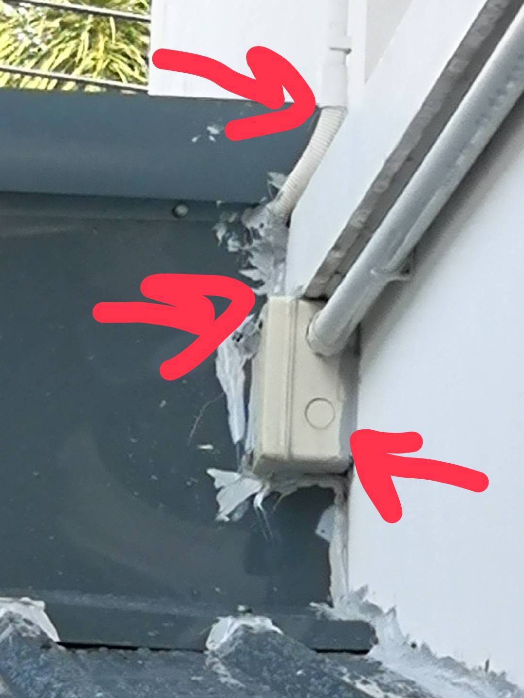 ตอนแรกช่างอีกคนบอกว่ ต้องเอากล่องและท่อออก ไม่งั้นน้ำจะไหลมาตามท่อตามผนัง แต่ผู้รับเหมาบอกทำได้ เราก็เชื่อมือ😭