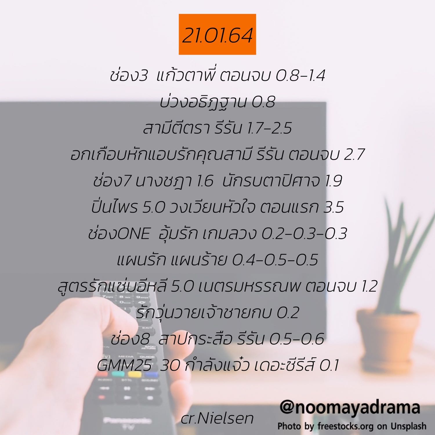 เรตติ้งละครประจำวันที่ 21 มกราคม 64