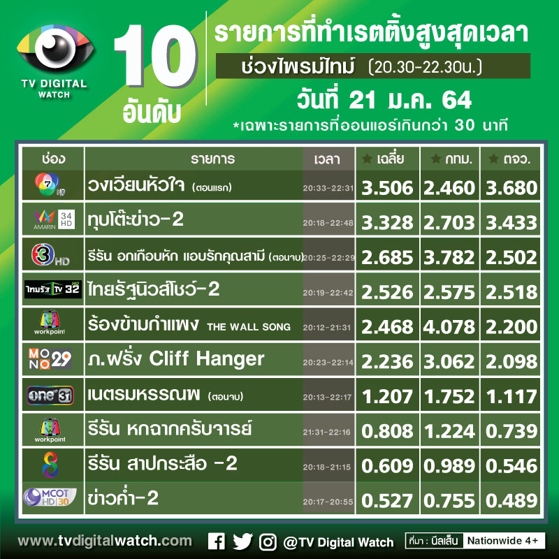 ส่วนละครหลังข่าวต้องทำใจหน่อยช่วงนี้ เพราะข่าวลุงพรกลับมาทำเรตติ้งให้อมรินทร์กับไทยรัฐอีกแล้ว