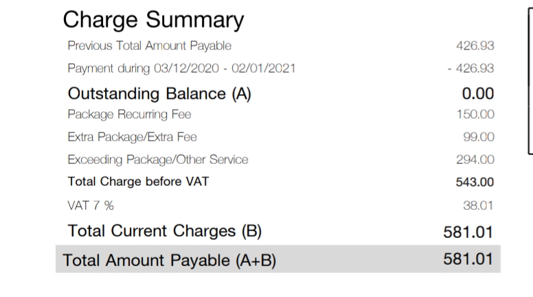 สอบถามครับ ยอดบิลเดือนมกราคม 2564 ผมโดนค่าExceeding Package/Other Service 294 บาท มาจากไหนครับ ทั้งๆที่โทรไม่เกินแพ็คเสริม
