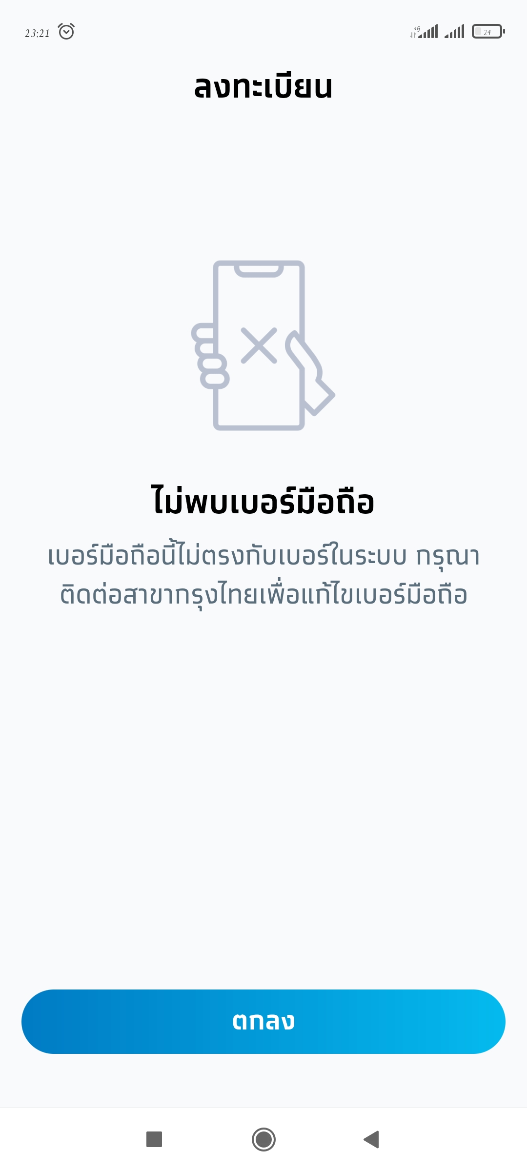 กรณีไปที่ตู้กรุงไทยไปเปลี่ยนเบอร์เเต่พอลงในเเอปกรุงไทยกลับไม่พบเบอร์?