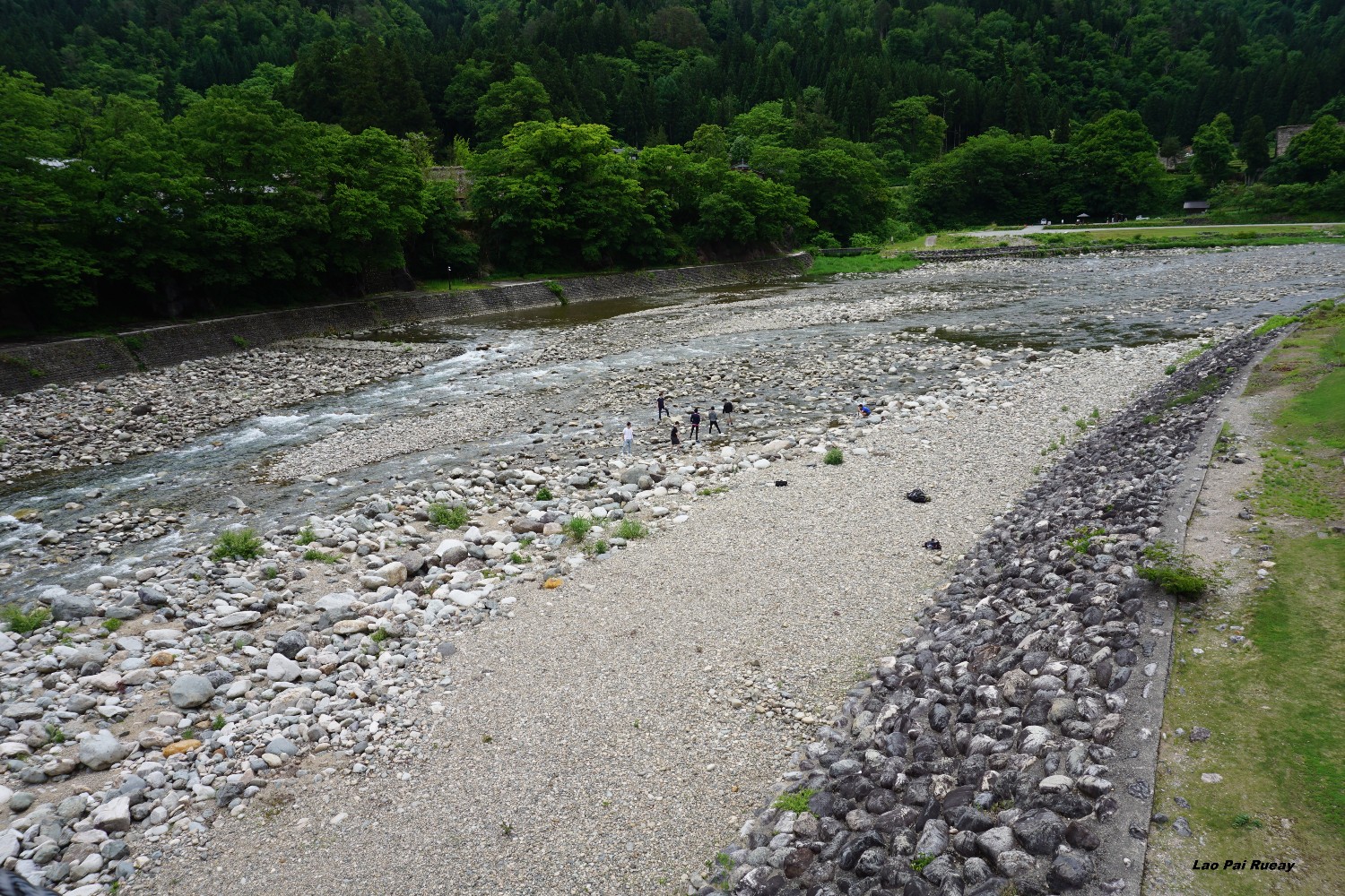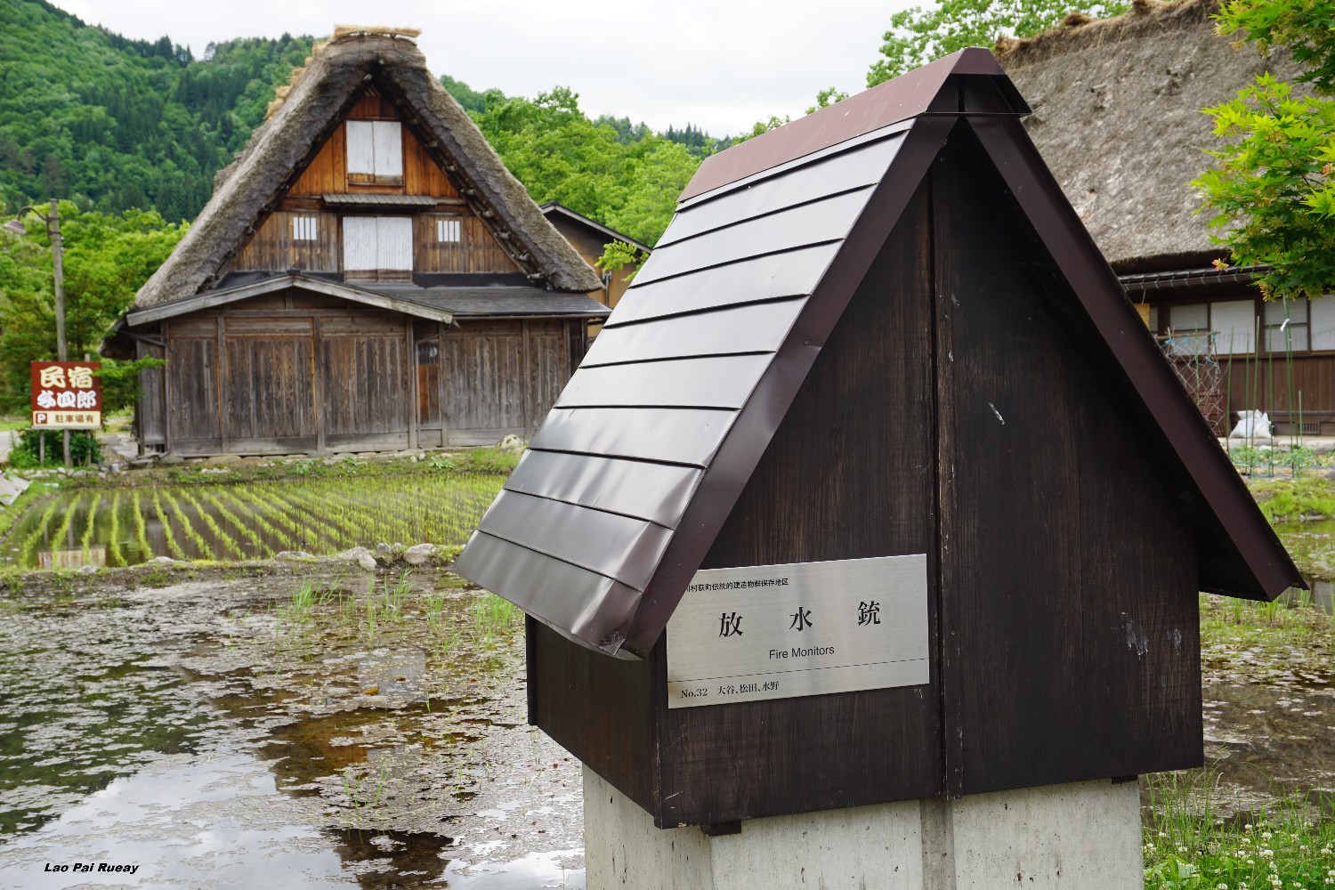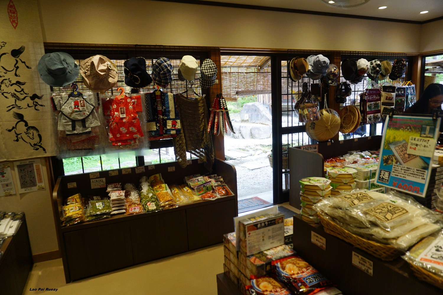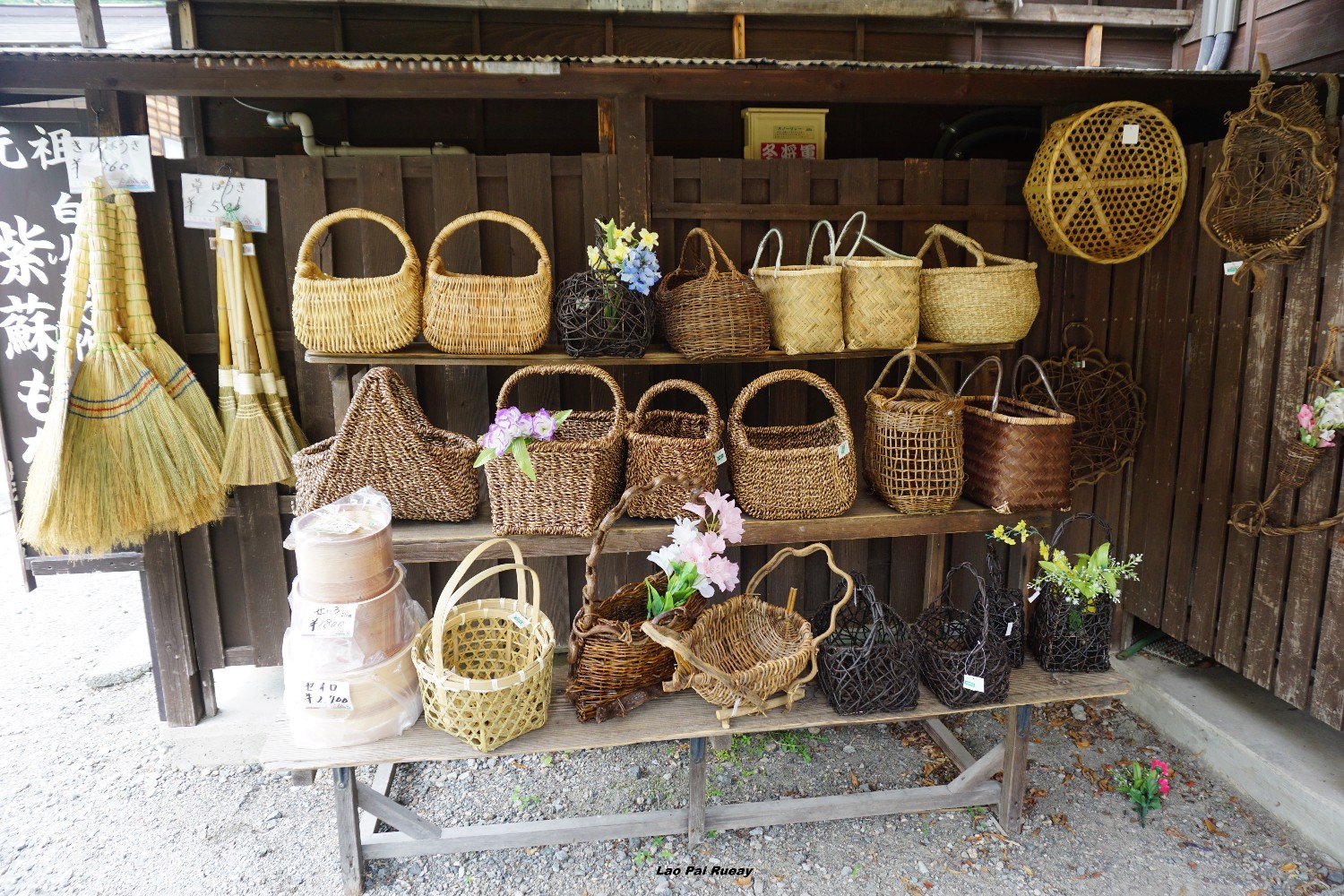 ผมเดินทางมาเที่ยวที่แรกคือหมู่บ้าน Shirakawa-go เป็นหมู่บ้านเก่าแก่ตั้งอยู่ในเขตจังหวัด Gifu ซึ่งหลายคนอาจจะเห็นชิราคาวะโกะในแบบที่เป็นหมู่บ้านถูกปกคลุมไปด้วยหิมะ การได้เห็นชิราคาวะโกะในเป็นสีเขียว สดใส ก็เป็นบรรยากาศที่ดีไปอีกแบบหนึ่ง เหมือนผมได้หลงไปอยู่ในยุคโบราณของญี่ปุ่นเลย ผมก็ได้เดินเล่นไปในตัวหมู่บ้านและแวะถ่ายรูปตามร้านค้าต่างๆ มีพวกตะกร้าหวาย ขนม ของใช้พื้นเมืองเยอะแยะไปหมด