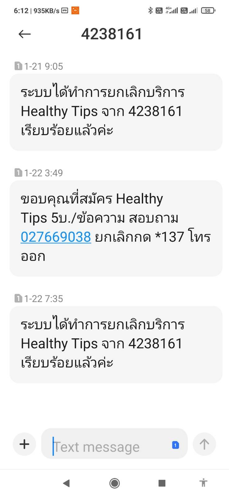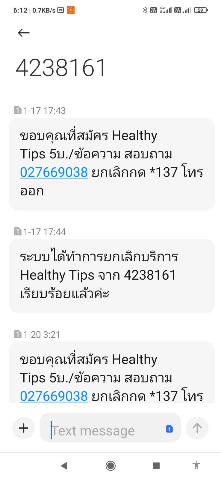ใช้เบอร์เติมเงินของทรู โดน sms ปล้นเงินทุกวันถี่มากๆ ครั้งละ 5 บาท กด *137 ยกเลิกทุกวัน ก็มีมาตลอด ส่งเรื่องไปให้ทรูก็บอกบล็อคแล้ว แต่ก็มีเนียนสมัครมากินตังค์ใหม่ทั้งที่ไม่ได้ทำอะไรเลย