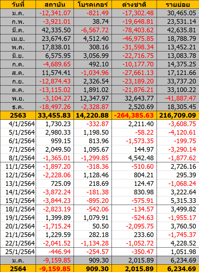 Sinthorn Summary 25/1/2564 : ต่างชาติขายสุทธิ -350.47 ลบ.