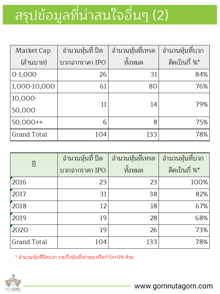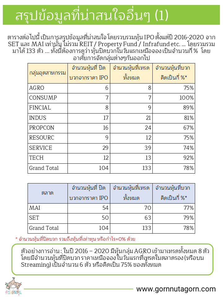 ✏ รวมสถิติที่น่าสนใจ IPO หุ้นทุกตัว ช่วง 2016-2020 แบ่งตามประเภทต่างๆ