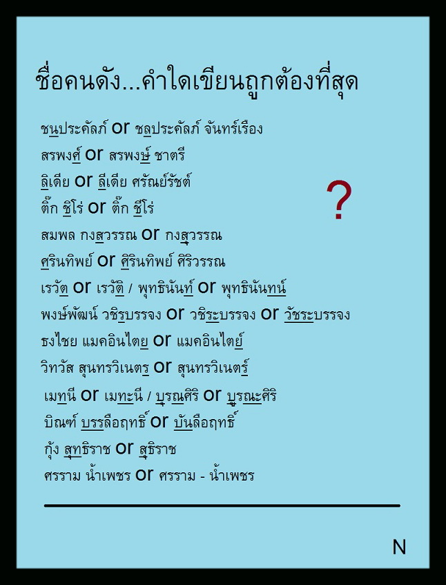 ชื่อคนดังต่อไปนี้...อย่างไหนเขียนถูกต้องที่สุด?