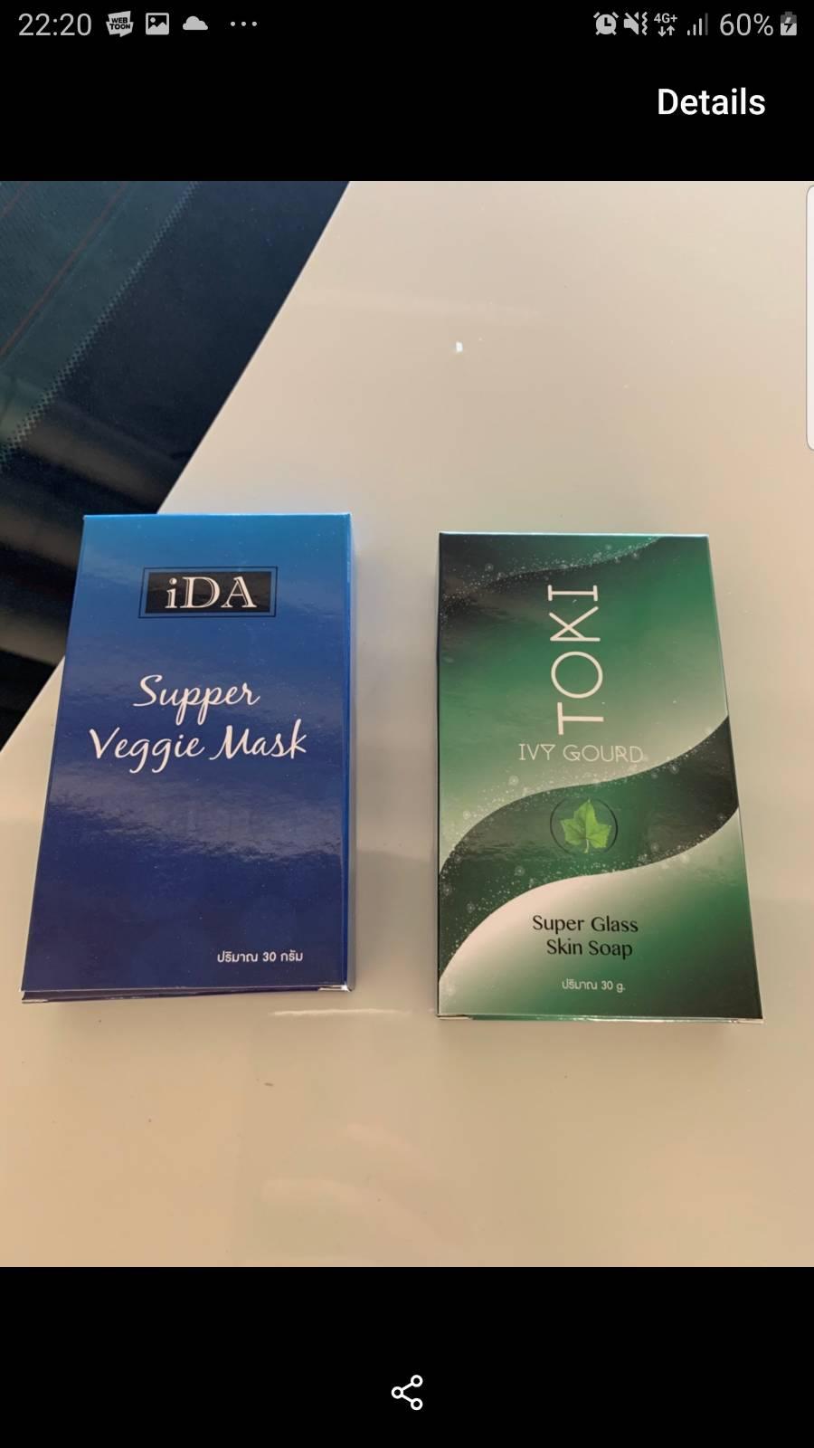 ตามหัวข้อค่ะ สบู่Toki Ivy Gourd (สบู่ตำลึง กล่องสีเขียวๆ) กับ มาส์กหน้า iDA supper veggie mask ค่ะ พอดีมันเด้งขึ้นมาในเฟซบุ๊คหลายรอบมาก เลยอยากลองใช้ เลยอยากได้ความเห็นจากคนใช้จริงค่ะ ว่าใช้แล้วดีจริงหรือเปล่า หยุดใช้แล้วเป็นยังไง ปลอดภัยใช่มั้ยคะ