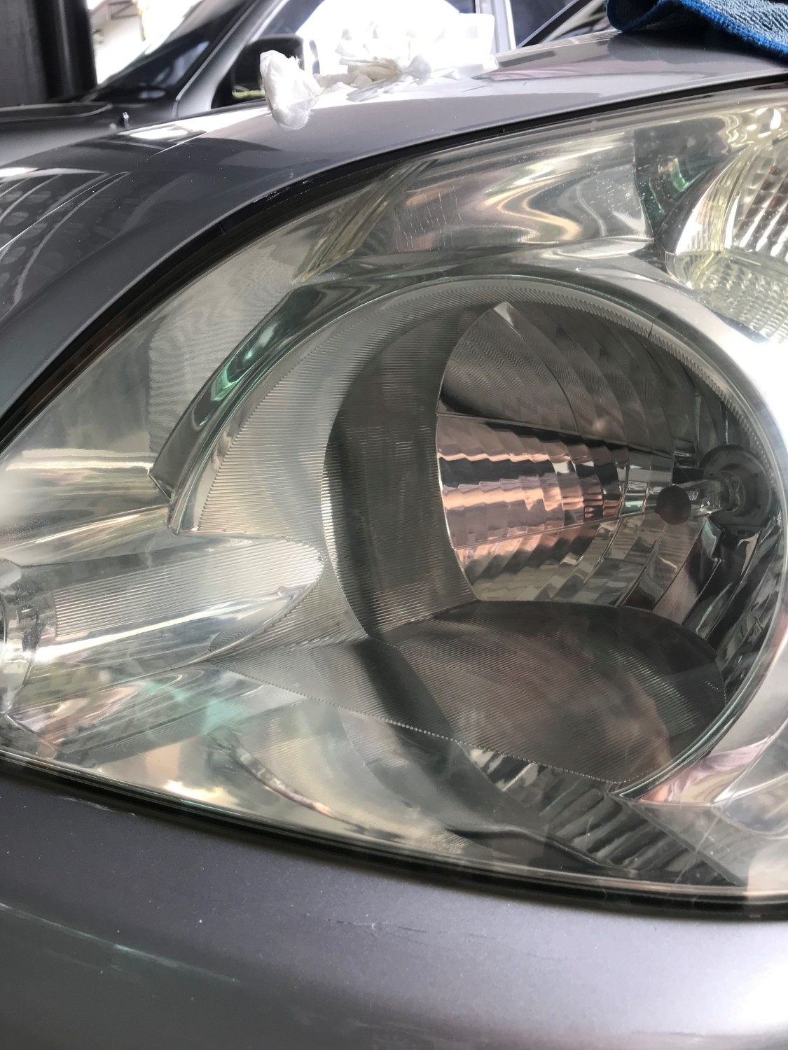 13:30 น. ไปถึงศูนย์ ช่างแจ้งว่ารอยมีก่อนหน้าที่จะเข้ามาดูอาการเมื่อวันที่ 25/1/64 (แต่เช้าวันนั้นก่อนสตาร์ทรถเพิ่งจะเช็ดขี้นกไป ใกล้ๆกับรอย (จุดที่วงกลมไว้ในรูป) เป็นไปไม่ได้ที่เราจะไม่เห็น เพราะรอยใหญ่มาก ช่างแจ้งอีกว่าไม่ได้มาจากไอน้ำ แต่มาจากการเสื่อมของโคมไฟ ที่โดนลำแสงจากหลอดไฟ เอารูปถ่ายจากรถคันอื่นมายืนยันว่าโคมมันเสื่อมจริงๆนะ ยืนเถียงกันพักใหญ่ น่ารำคาญมาก เลยบอกว่าพอๆ คว้ากุญแจแล้วออกมาเลย
