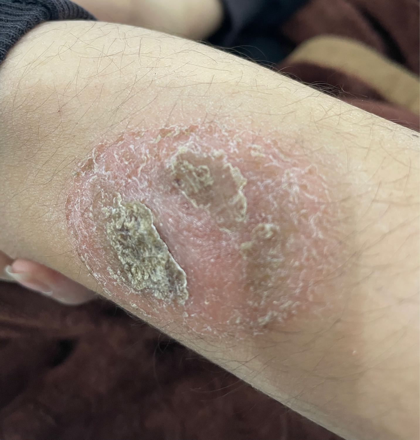 เดือนแรกซื้อยามาทาแล้วก็มียากินค่ะ เดือนที่สองเหมือนเริ่มจะหายแล้ว แต่พอมาเดือนที่สามแผลเริ่มกว้างขึ้นค่ะ เป็นตามภาพเลยค่ะ