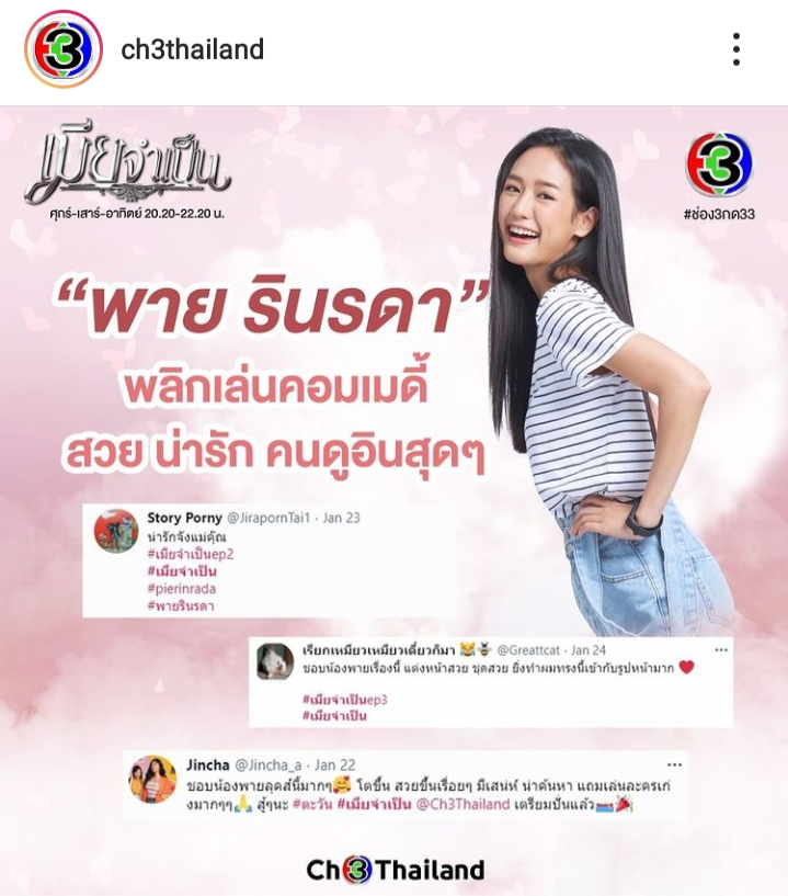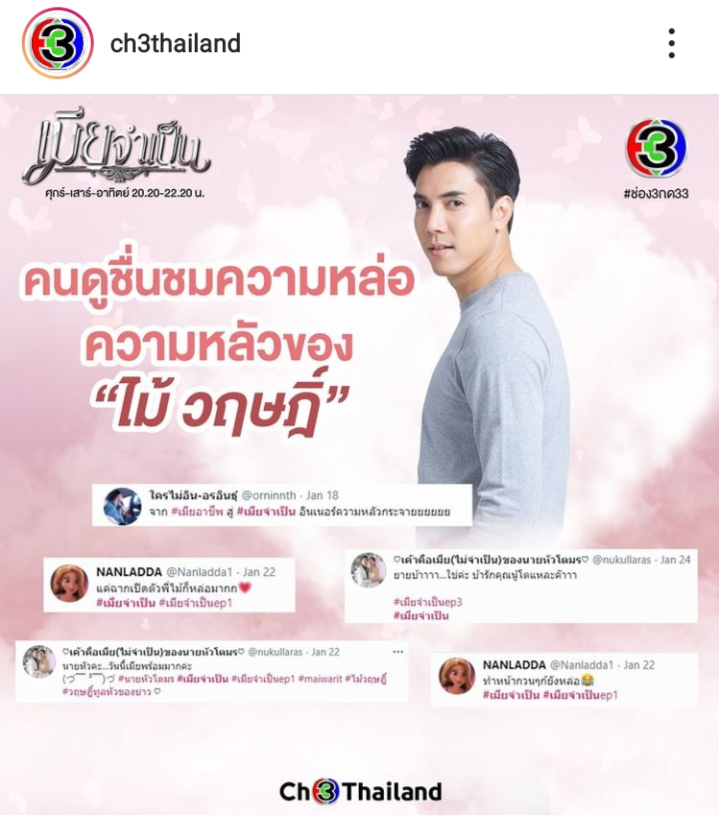 https://www.instagram.com/p/B5rUyRhnxL8/?igshid=whxy7jf2ibo3 จขกท. พึ่งเห็นข่าวจาก IG เมื่อกี่นี้ว่า เมียจำเป็น รีเมคที่ช่อง 3 ได้พระนางแล้ว คือ ไม้ วฤษฎิ์ คู่กับ พาย รินรดา เมียจำเป็น สมัยก่อนค่ายก