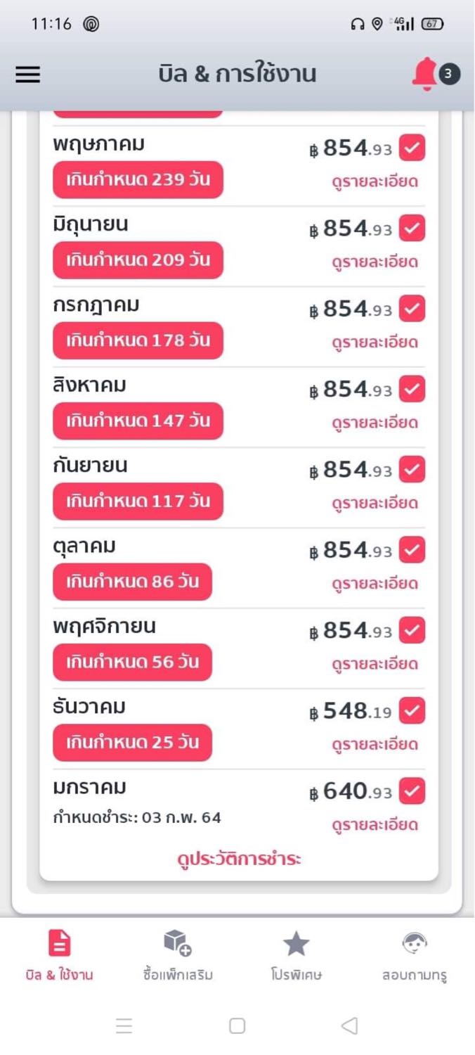 ค้างชำระเน็ตบ้านทรู 16 เดือน