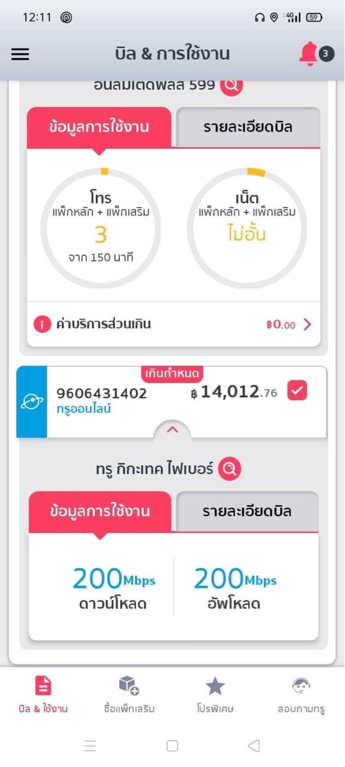 เมื่อวันที่ 28 พ.ค. มีบิลแจ้งมาในข้อความว่าค้างชำระ 738 แล้วโดนระงับสัญญาณไป เลยโทรไปขอเปิดสัญญาณชั่วคราว แต่หลังจากเข้าไปเช็คในแอป True ก็ไม่มีบิลให้ชำระ เลยโทรถามคอลเซ็นเตอร์ เค้าบอกว่าเบอร์นี้ยังไม